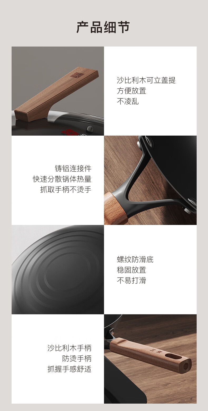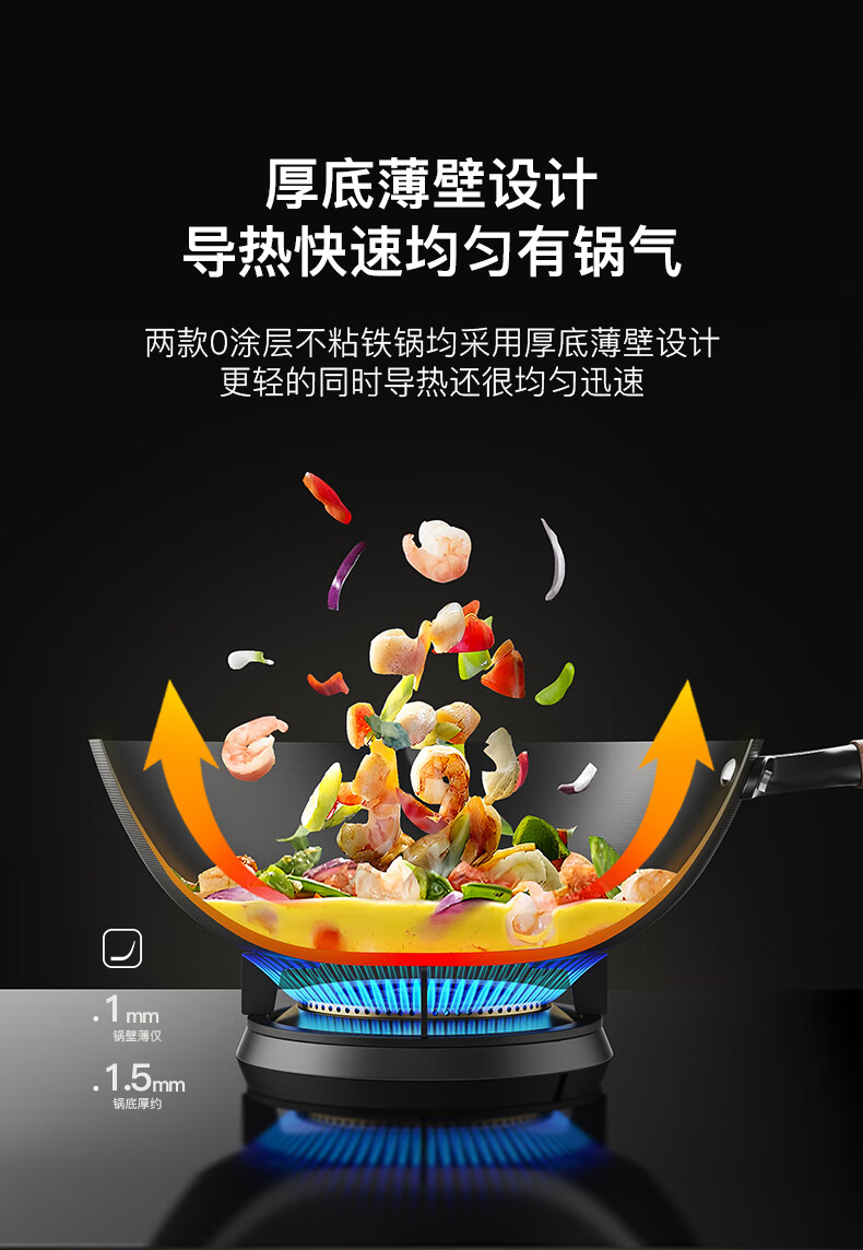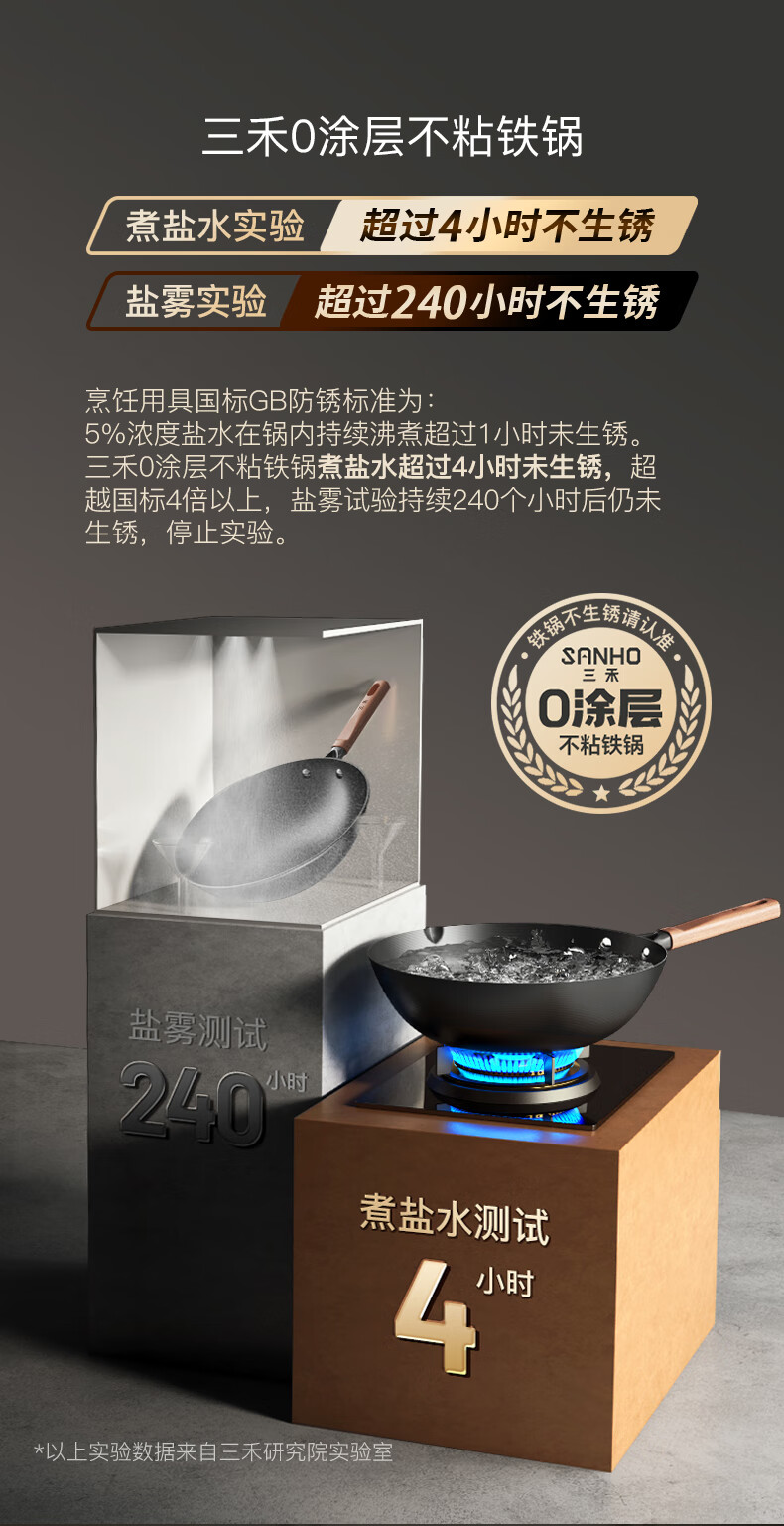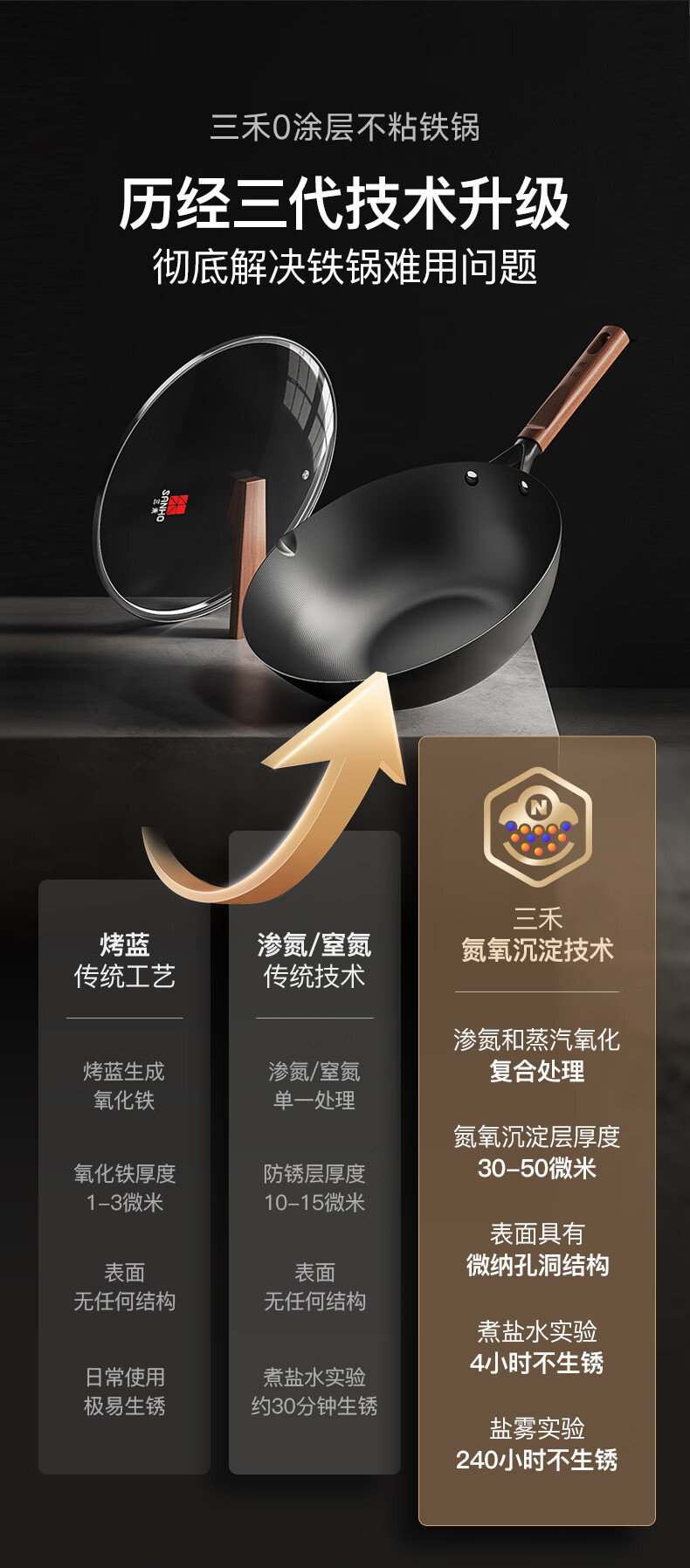 三禾无涂层铁锅炒菜锅窒氮防锈不粘熟铁锅32cm_TC32T7(圆底)