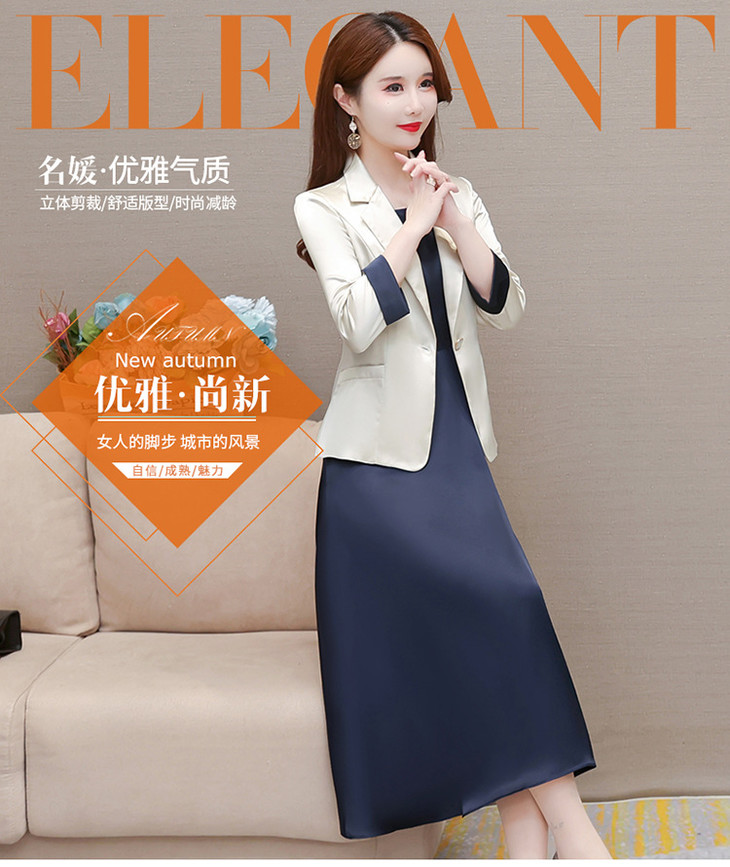 秋款中长款洋气内搭连衣裙通勤气质小西装套装QYM-YJ-22D06X-L