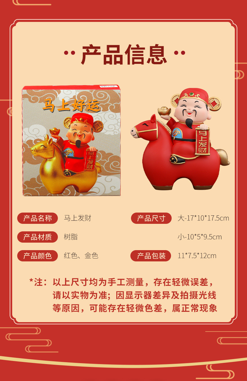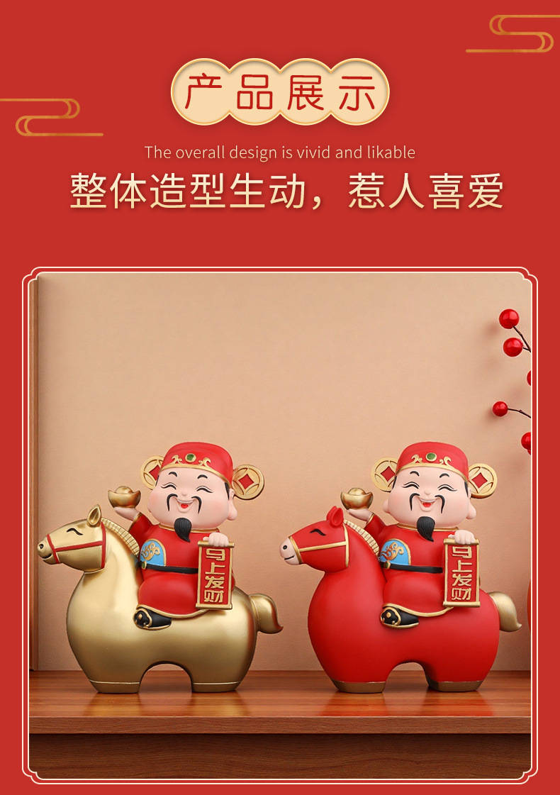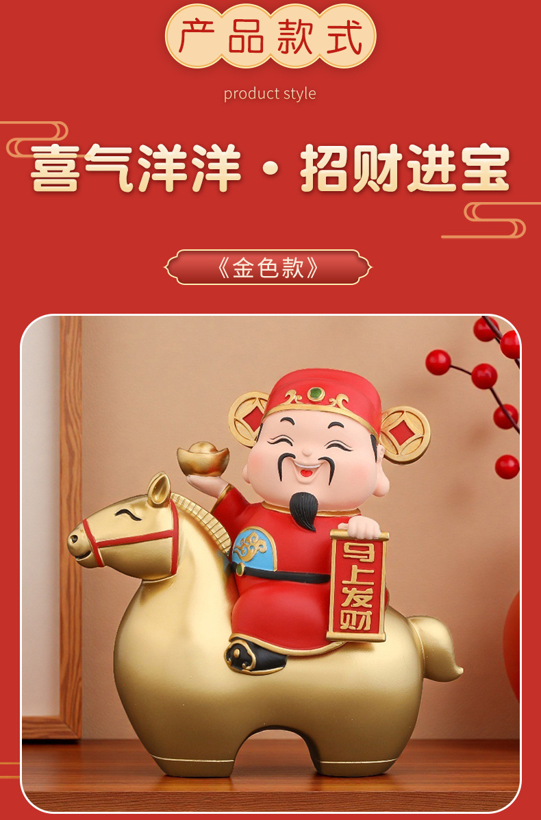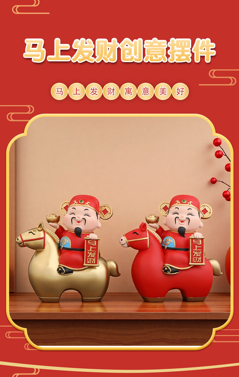 【马年财神马上发财摆件】办公室店铺家居招财装饰 乔迁新年礼物