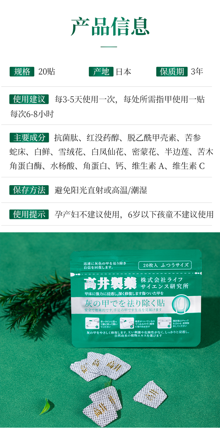 [日本原装进口]高井灰甲贴 日本公立医院指定用品成分温和 使用方便,无需锉甲拔甲,贴出健康甲