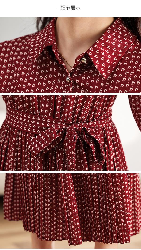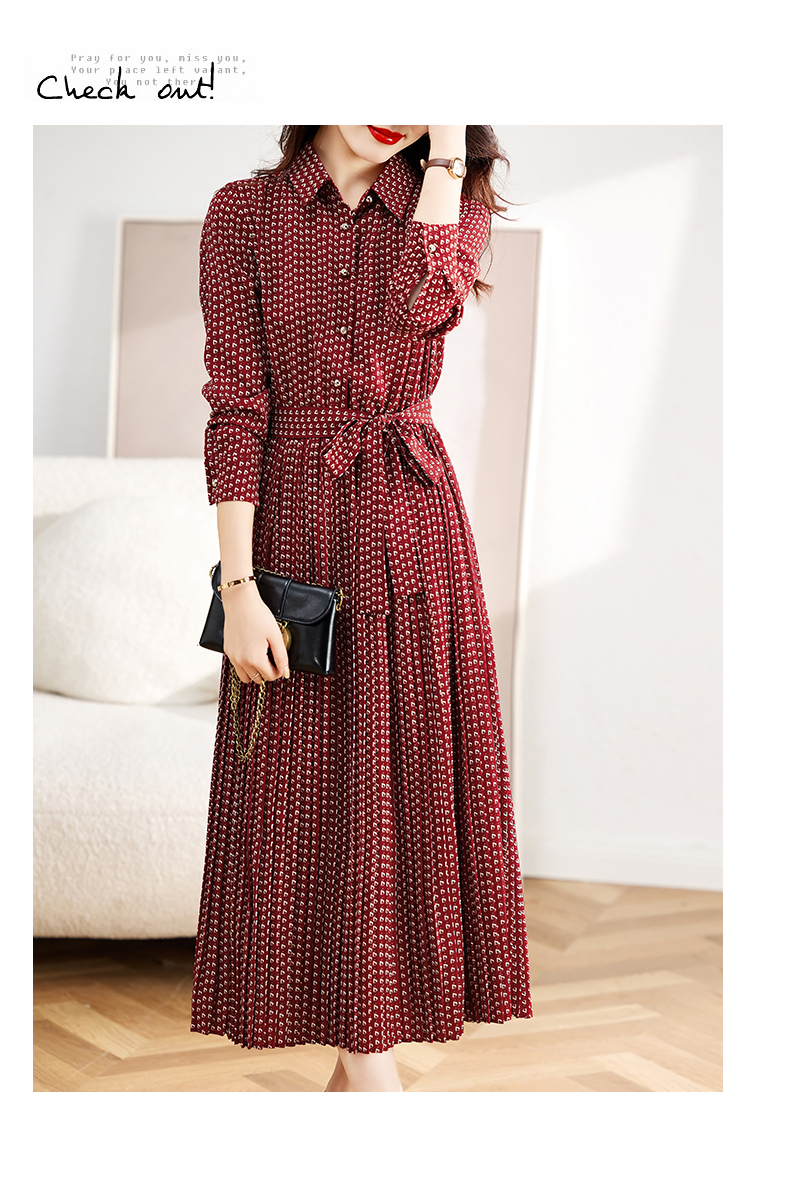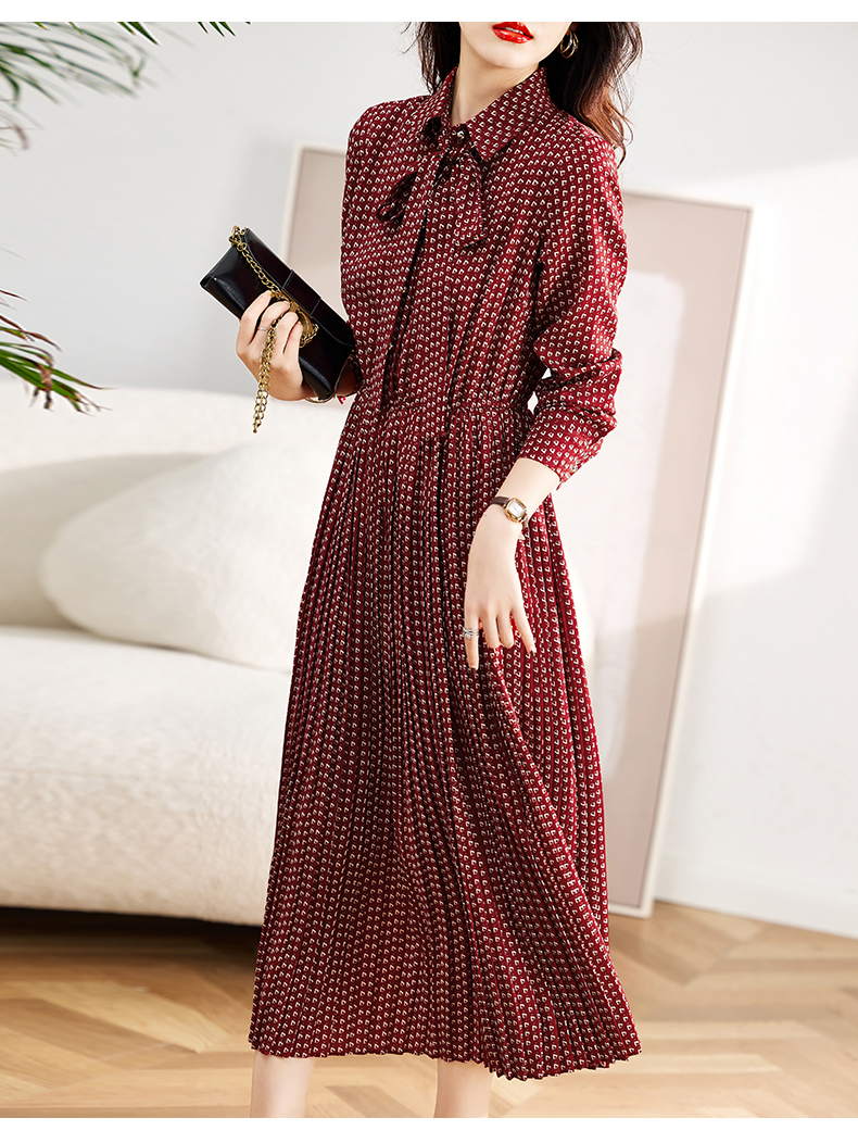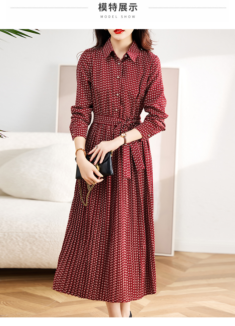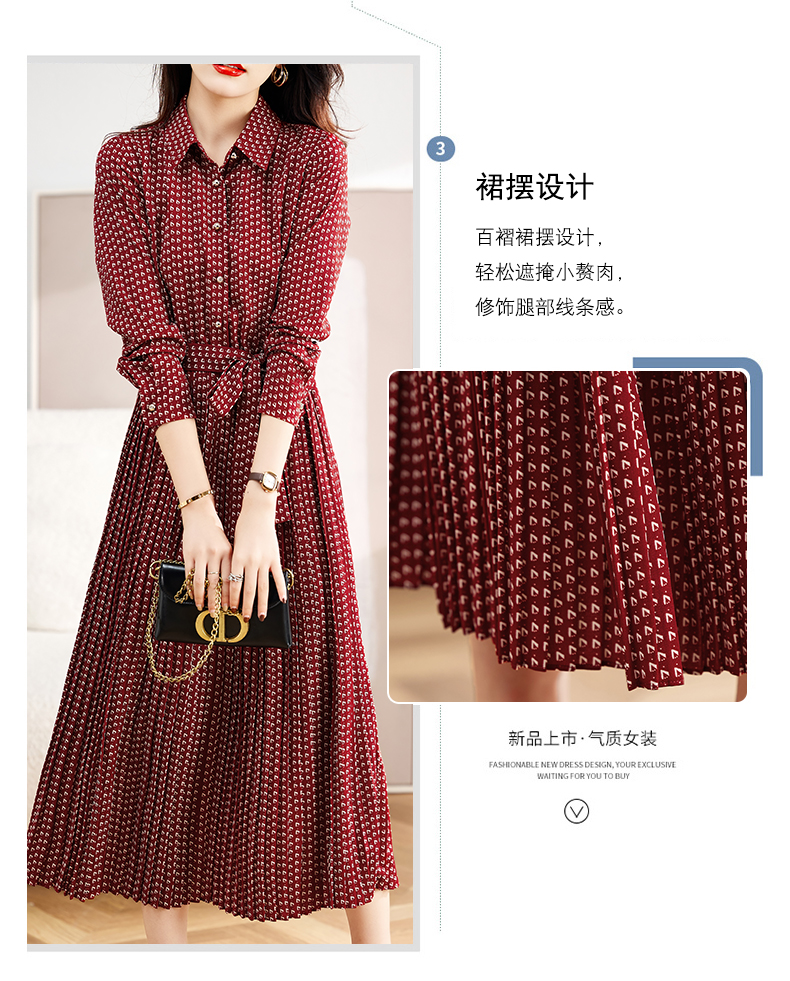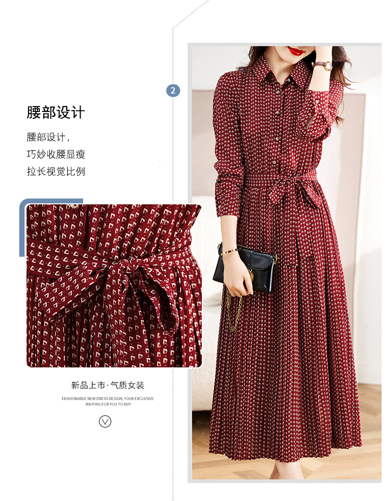 秋冬新款,长袖衬衫领松紧腰长款波点百褶裙学院风连衣裙HR-SYY2017A