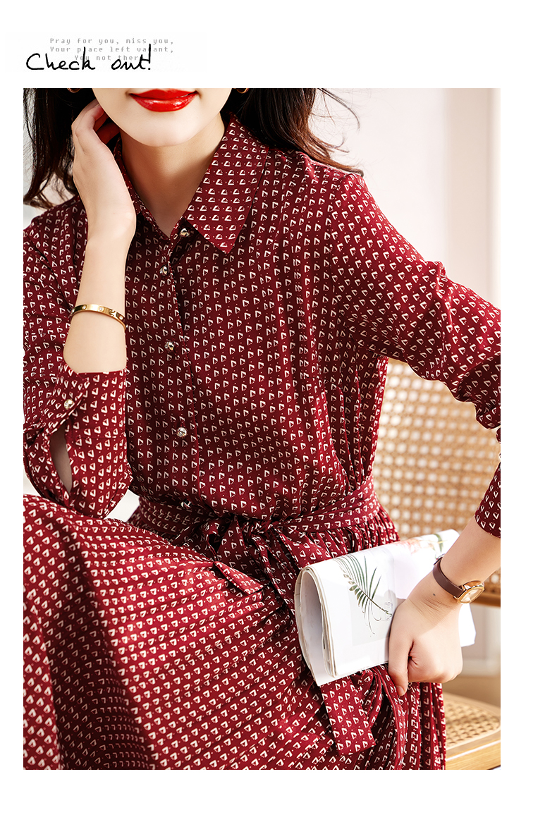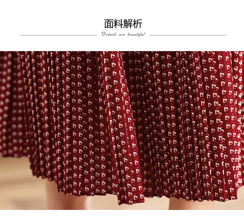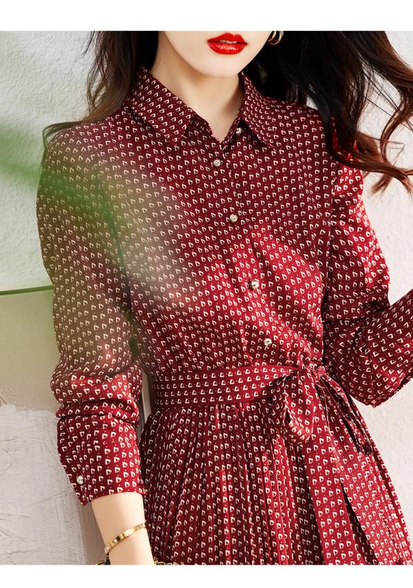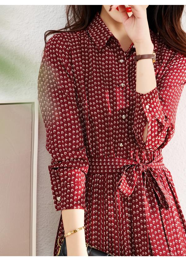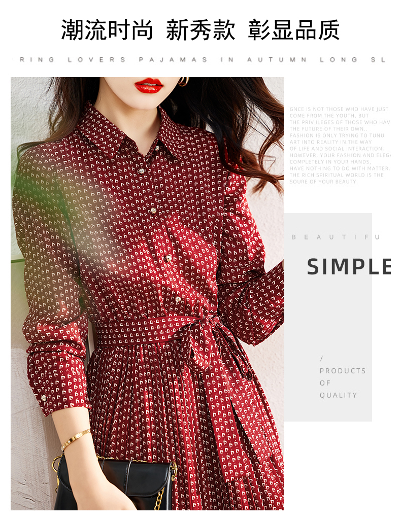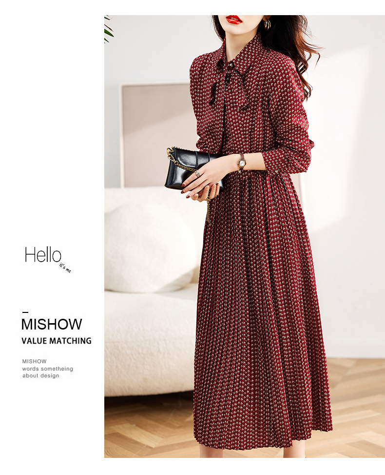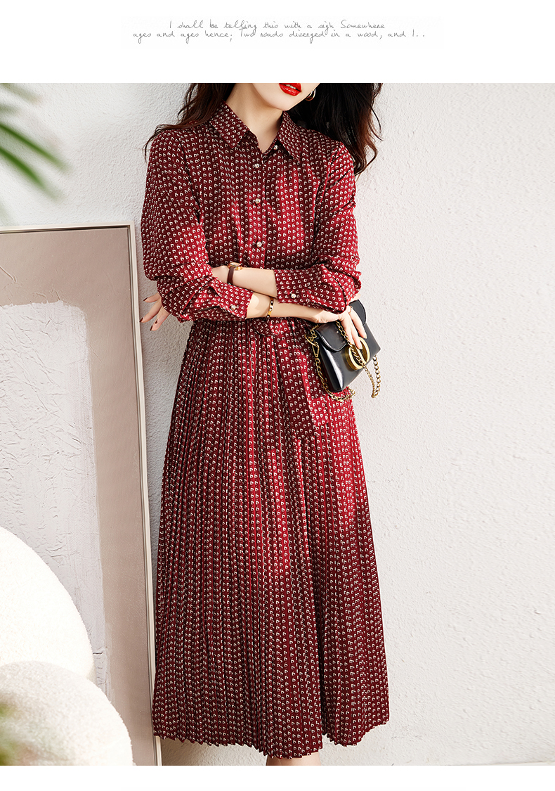 秋冬新款,长袖衬衫领松紧腰长款波点百褶裙学院风连衣裙HR-SYY2017A