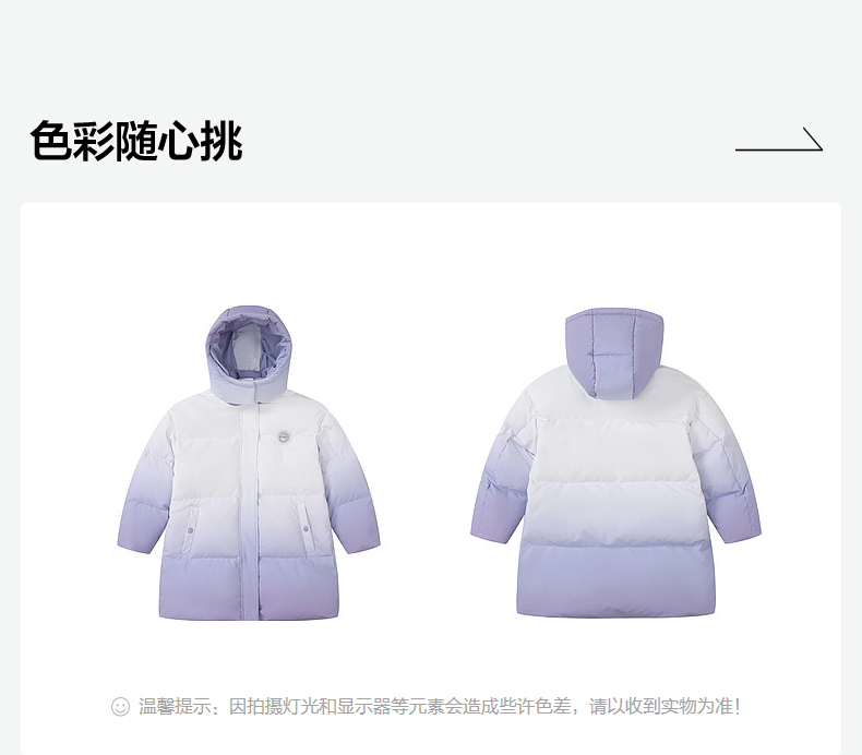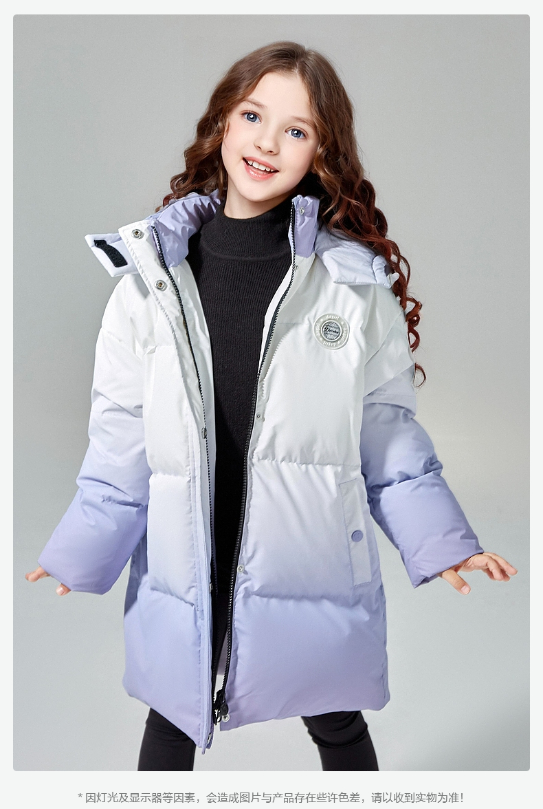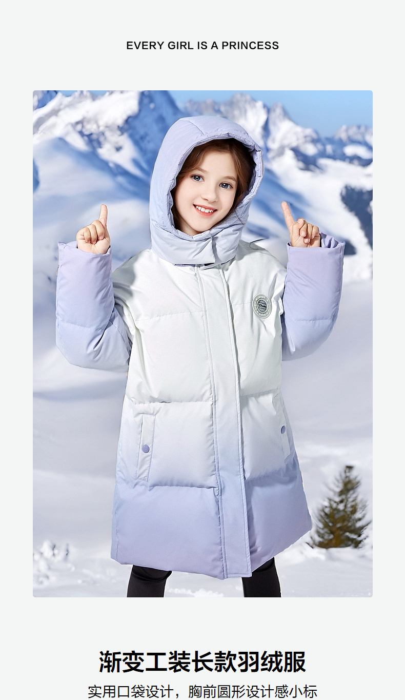 笛莎Deesha女童羽绒服2024冬季新款渐变工装长款羽绒服