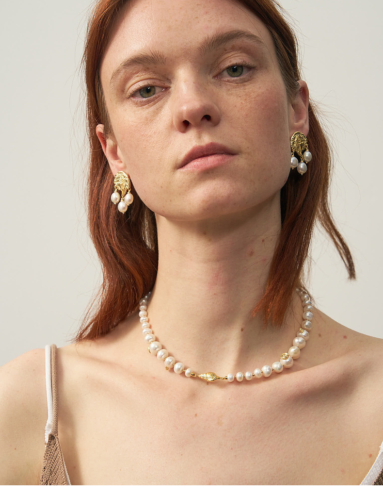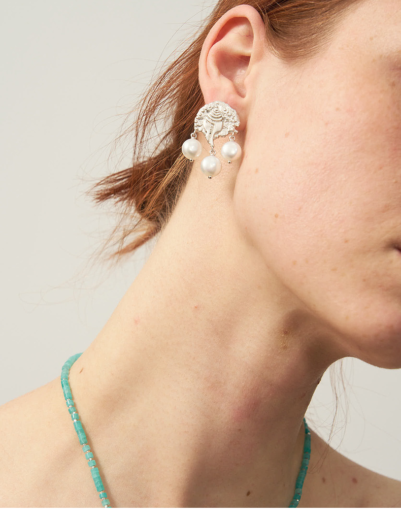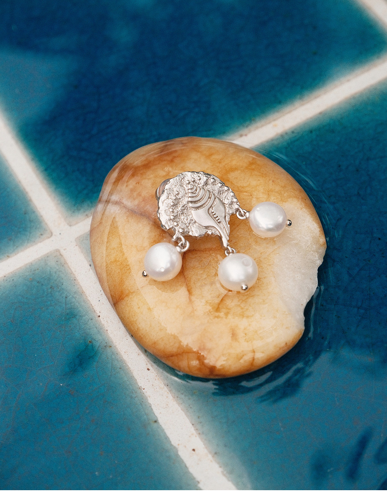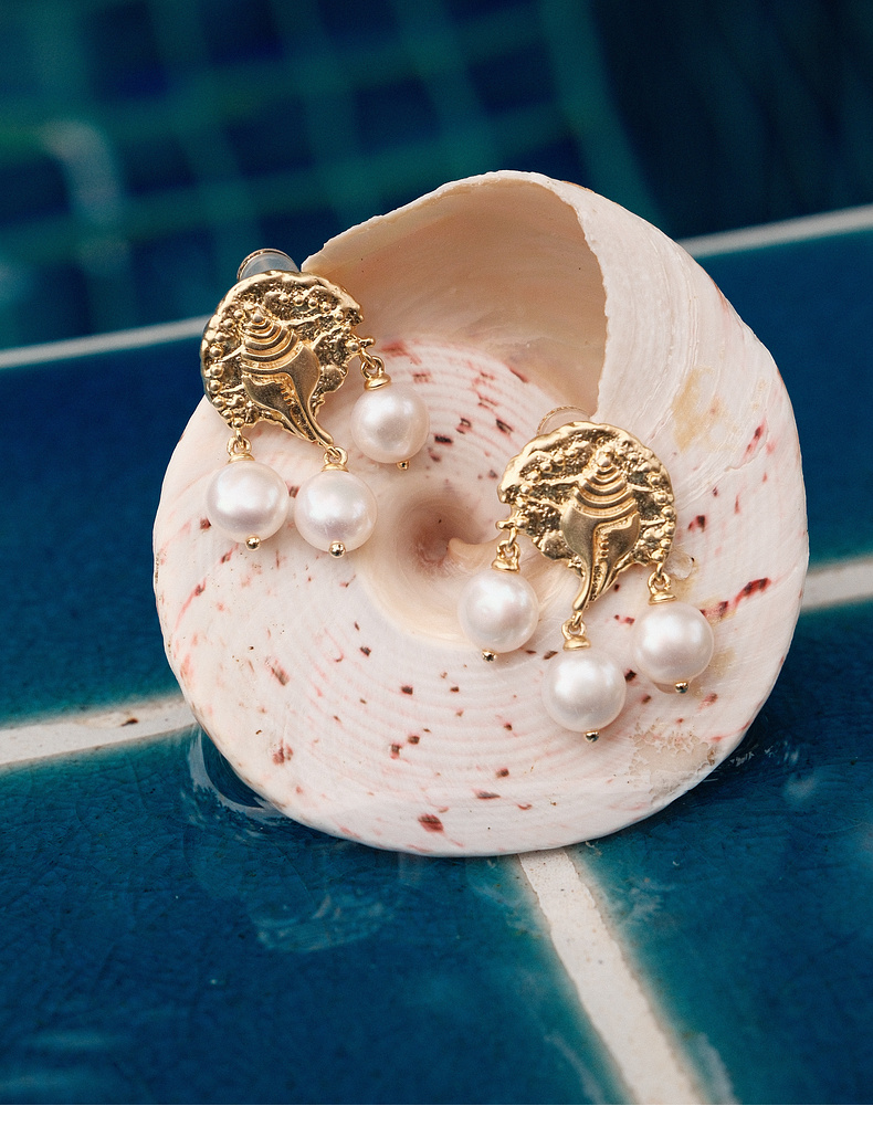 lost in echo2025夏新款度假复古高级925银耳针金币珍珠耳环耳坠