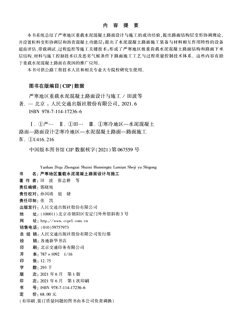 书名:严寒地区重载水泥混凝土路面设计与施工