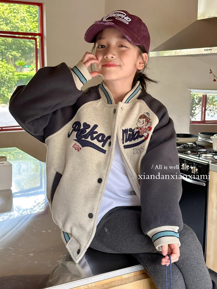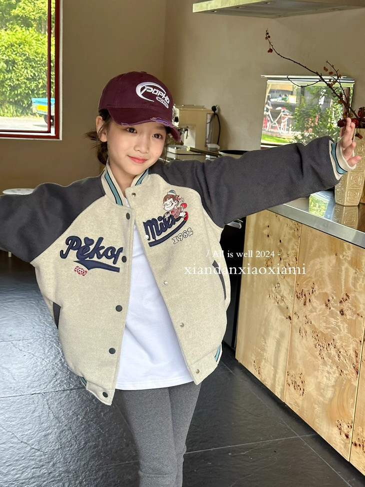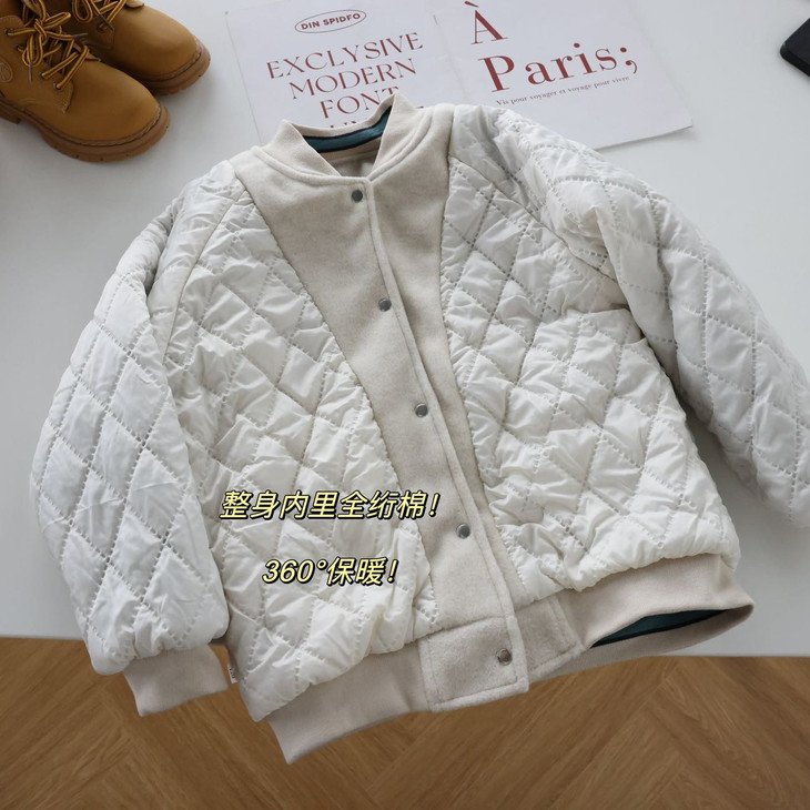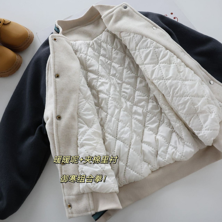 棒球服的版型很重要‼️ 这款夹棉棒球服是经典版型!巨好看 牛仔裤和卫裤搭配起来都很好看 防风保暖~不臃肿又不失时髦感🥳 夹棉面料!保暖度十足~轻盈保暖舒适 宽松的版型更是很爱运动的小朋友! 小朋友不受束缚,活动自如✨ 喜欢的麻麻不要错过~