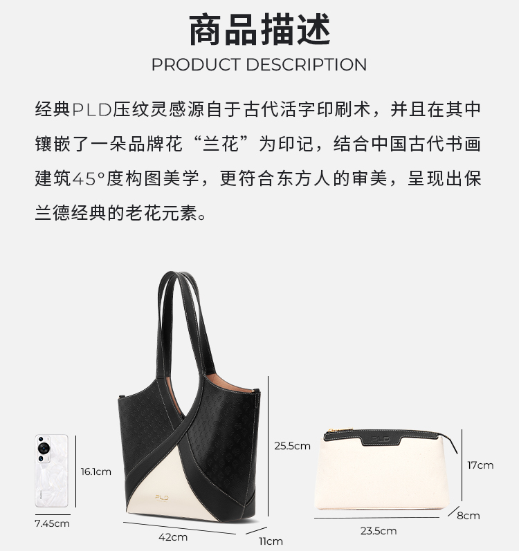 保兰德PLD老花经典系列衣襟系列头层牛皮高级感托特包体制内子母包女通勤必备女包