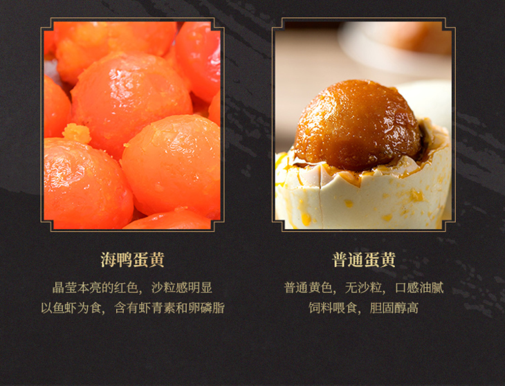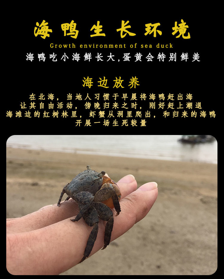 1.北海边吃小海鲜长大的海鸭,蛋黄特别鲜美,色红圆大,质地粘韧,富有弹性,香酥爽口,古法腌制,蛋黄鲜、细、嫩、松、沙、油