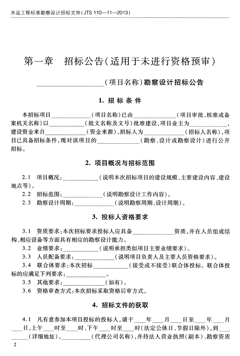水运工程标准勘察设计招标文件
