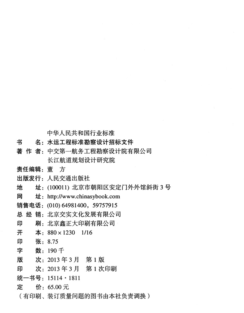 书名:水运工程标准勘察设计招标文件