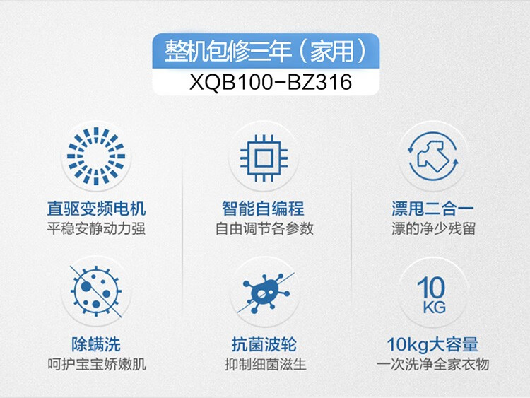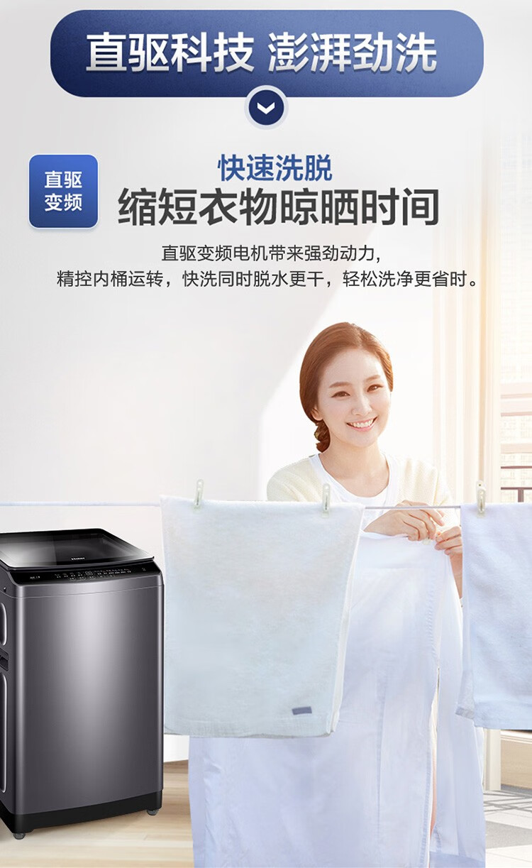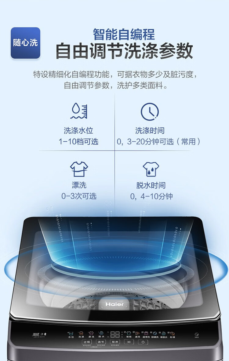 【直驱变频】海尔波轮洗衣机全自动10公斤直驱变频神童1级变频 LED屏自编程除螨洗专用桶自洁速洗BZ316除螨洗玻璃一级自编程 洗脱一体
