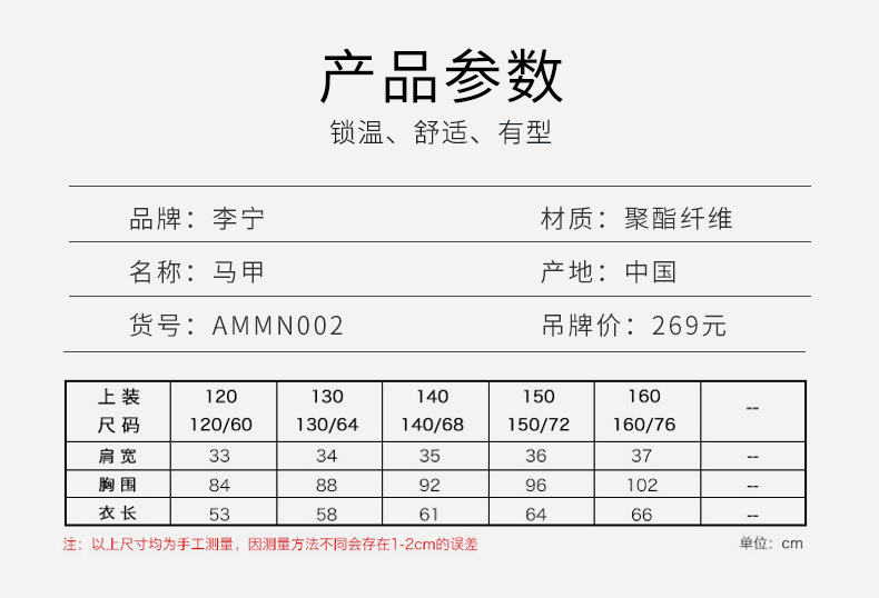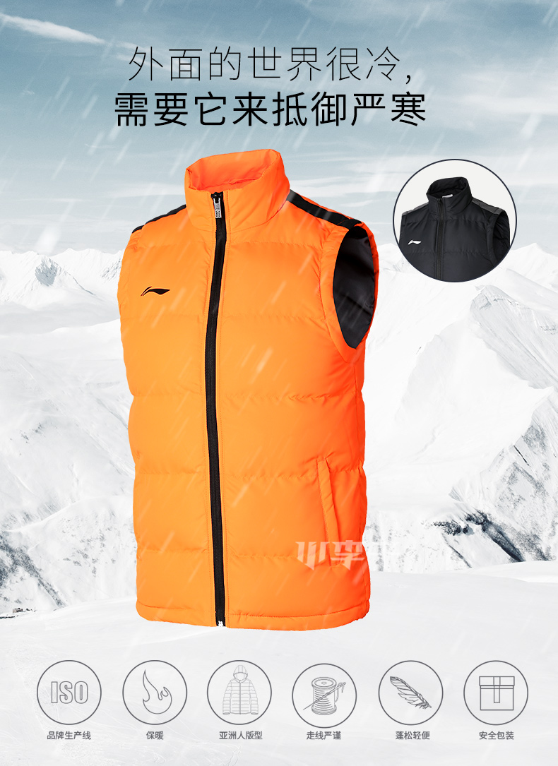 小李子专柜正品Lining李宁儿童中长款高领棉马甲儿童冬季保暖棉服