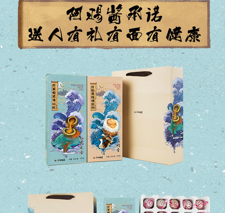 【国潮双蛋礼盒】非遗手绘款 | 溏心绿茶皮蛋+流沙红泥咸鸭蛋 | 优质沙湖散养鸭蛋 | 松花蛋约70g/枚