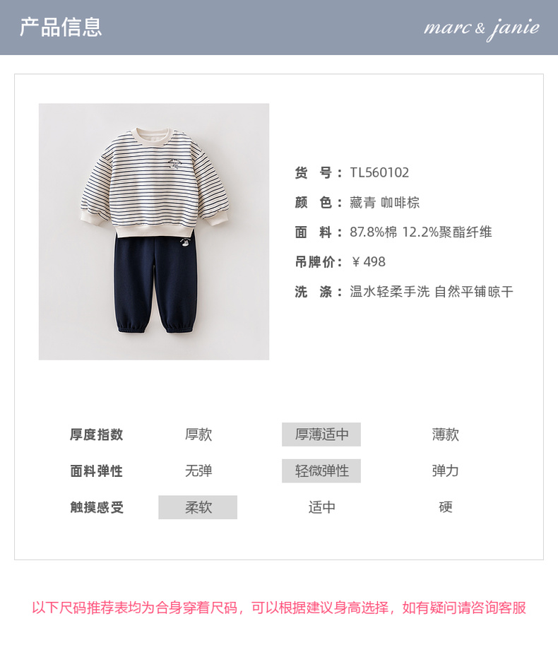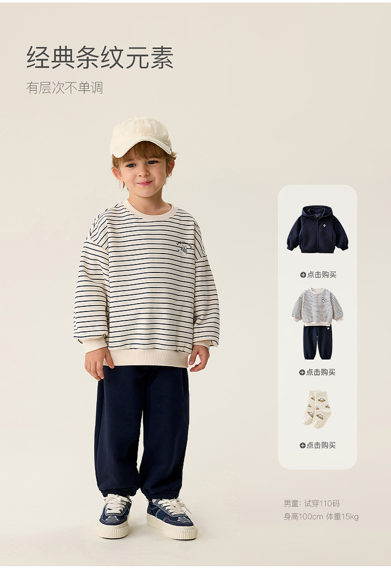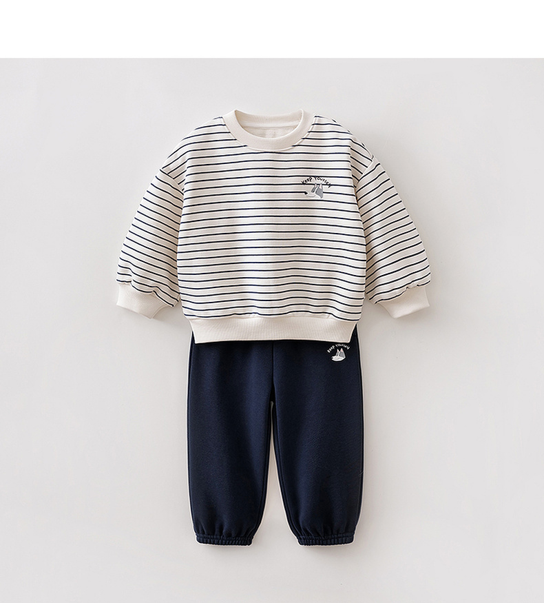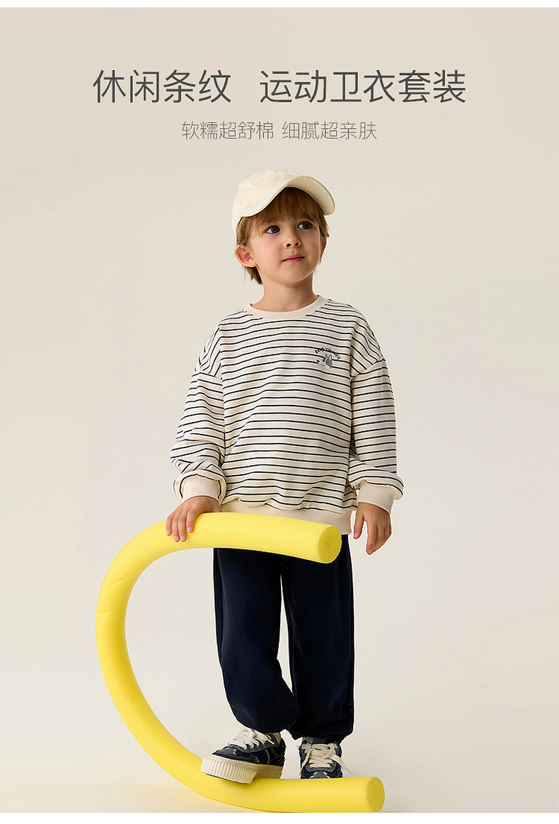 马克珍妮休闲条纹男童运动卫衣套装2026年春装新款560102