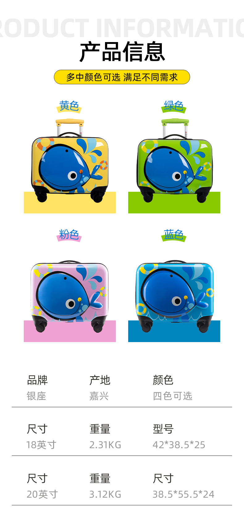 银座3D可爱儿童行李箱18寸迷你拉杆箱万向轮男女孩旅行箱 L-1505-1