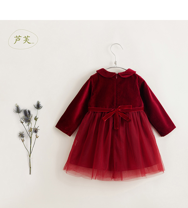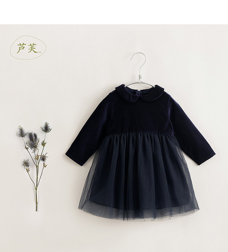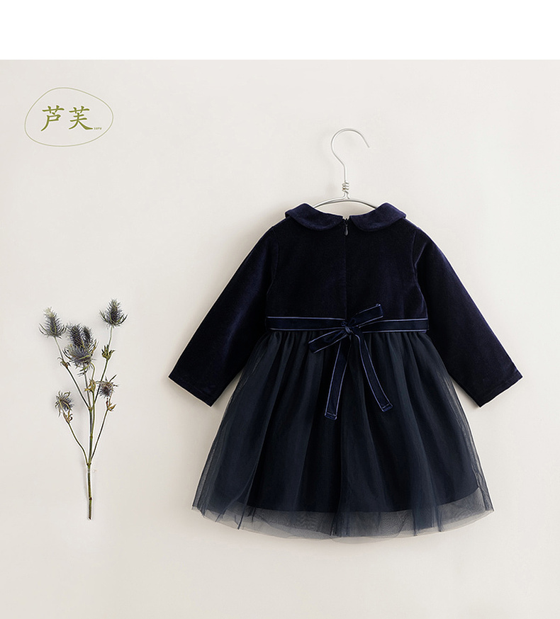 【马克珍妮 芦芙】秋冬装新款 娃娃领网纱丝绒连衣裙231578