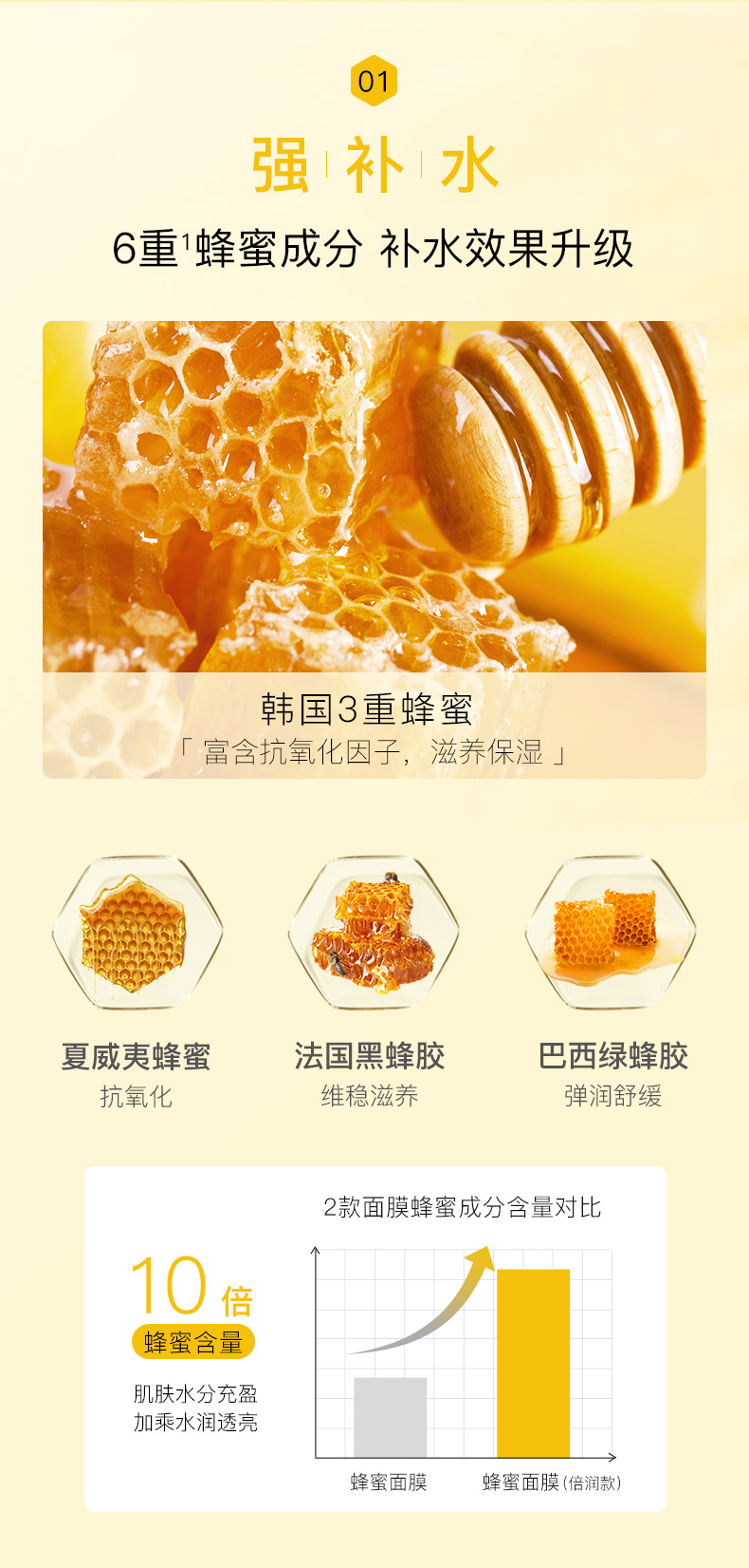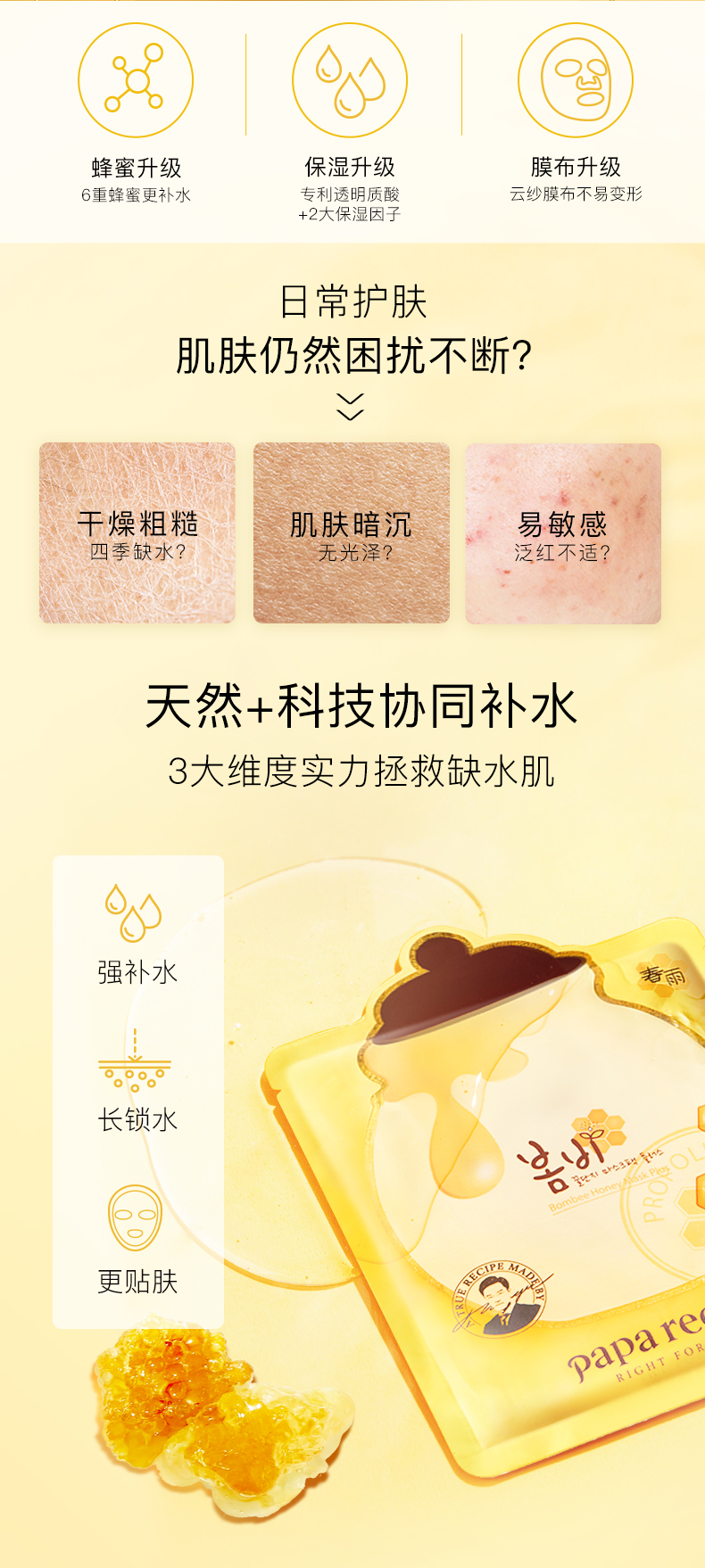 HG 春雨蜂蜜面膜黄春雨pro倍润款补水女男保湿敏感肌专用护肤 6片