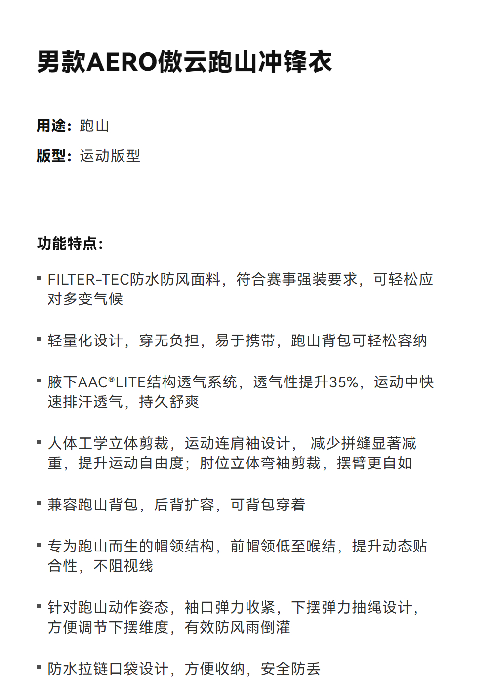 KAILAS凯乐石 男款AERO傲云跑山冲锋衣 KG2621103