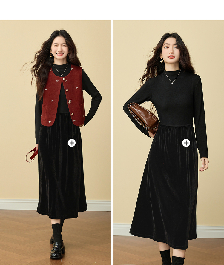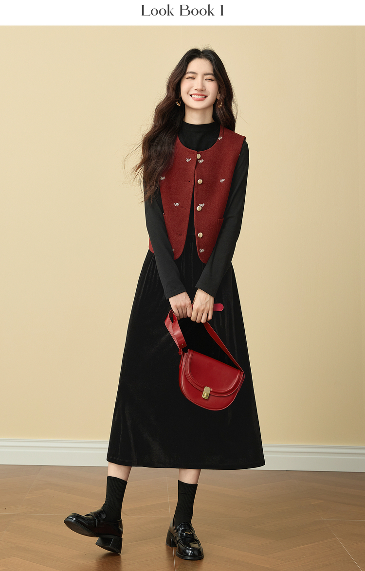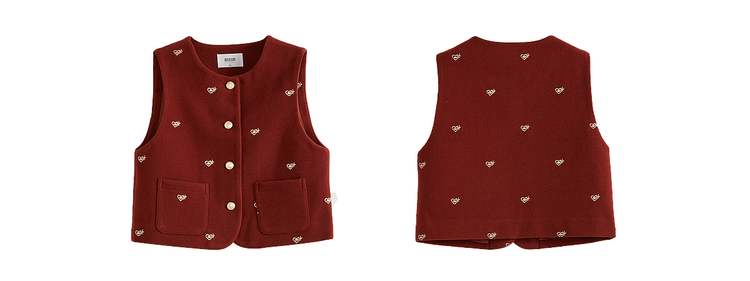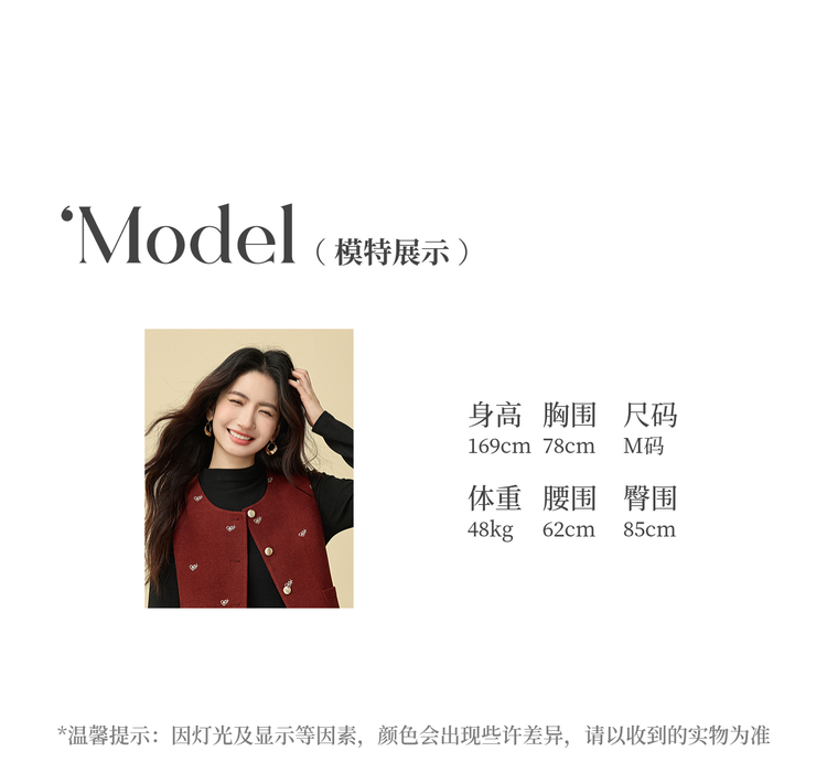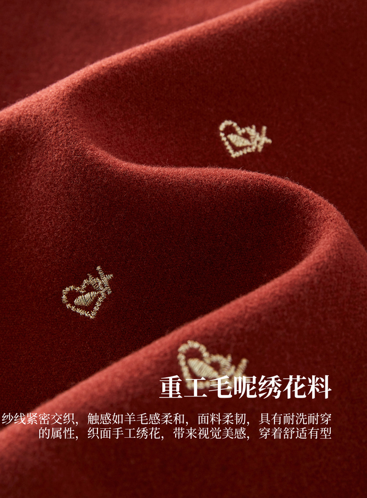 【年货节】熙世界圣诞红色毛呢马甲背心女秋冬小个子爱心刺绣无袖短外套上衣