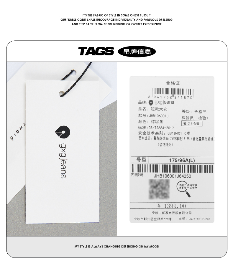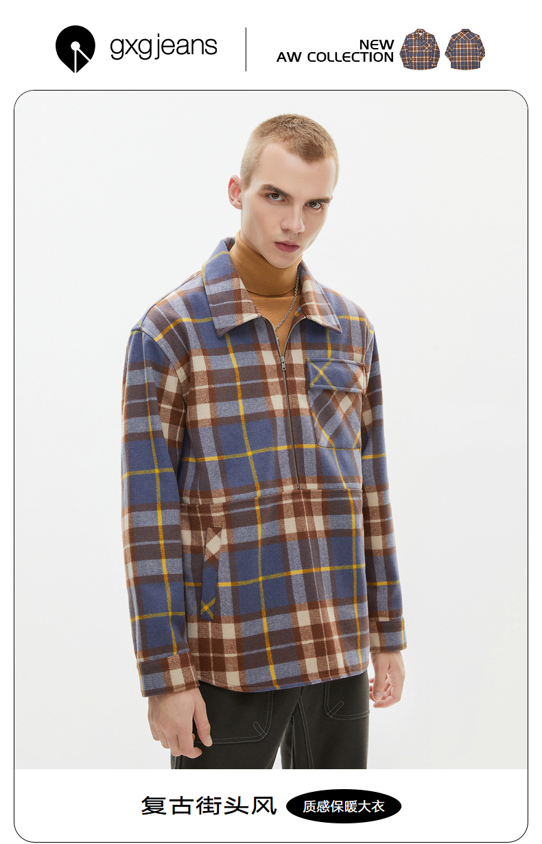 gxg jeans男装冬季大衣男冬季加厚短款呢子外套男潮气质大衣