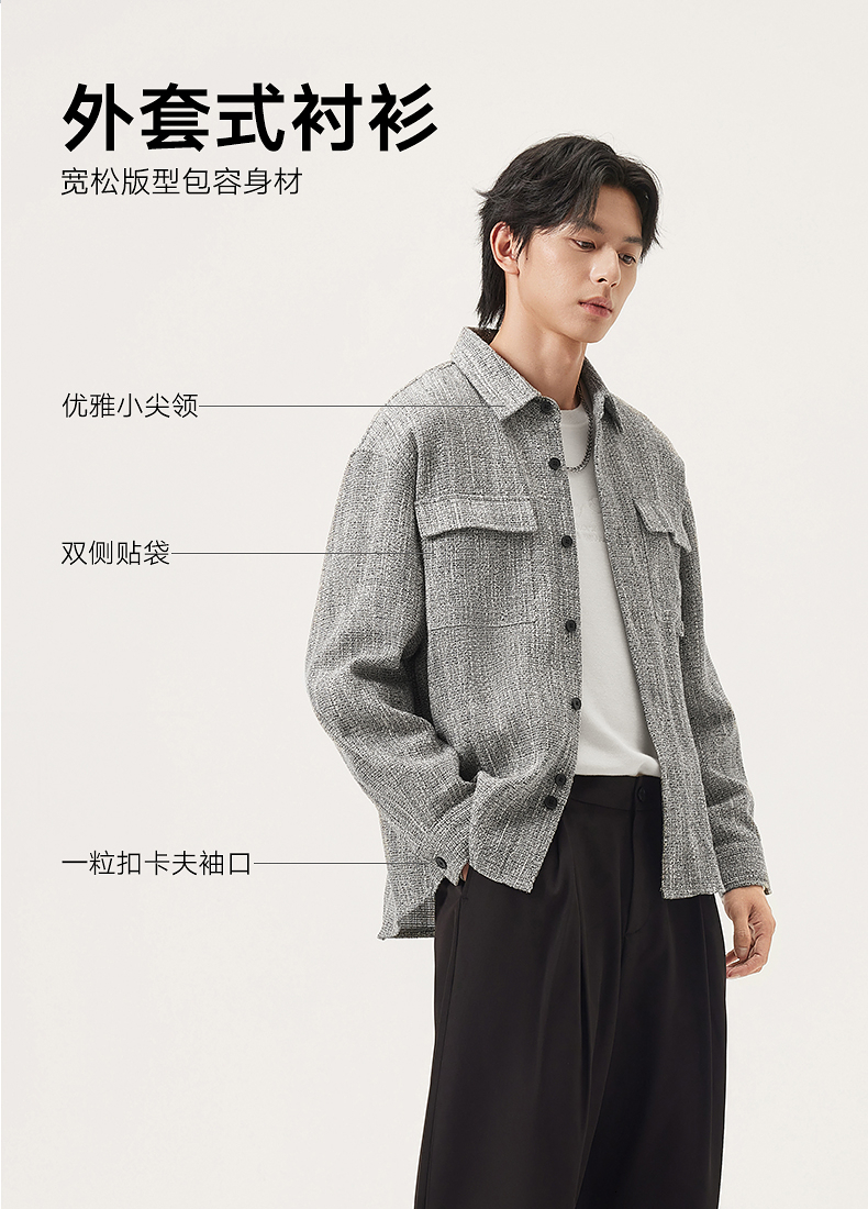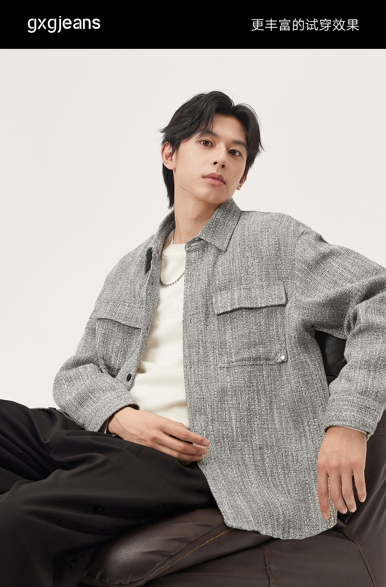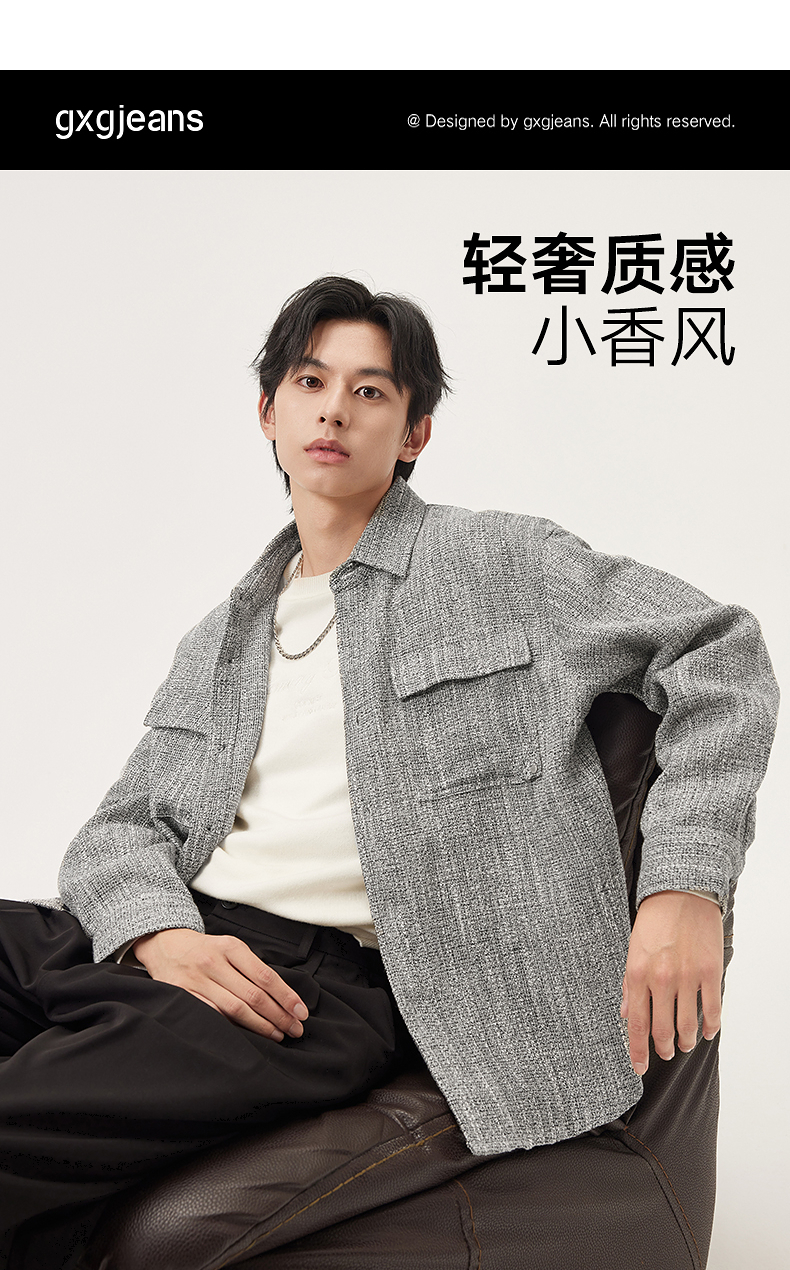 gxg.jeans男装 灰色小香风肌理潮流时尚衬衫式外套宽松 25秋热卖