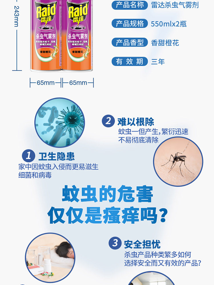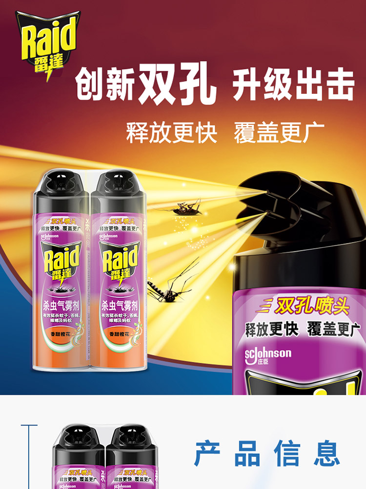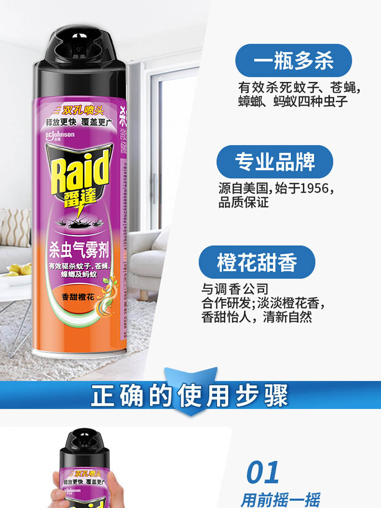 雷达 杀虫剂喷雾 杀蟑螂 550ml*2瓶 香甜橙花 灭蟑螂 蟑螂屋 杀虫剂 灭小强 杀蟑饵剂 全窝端 蟑螂克星