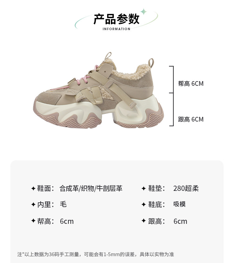 品质好货 | Safiya/索菲娅2023秋冬炸街网红小众加绒保暖增高老爹鞋 SF34112739