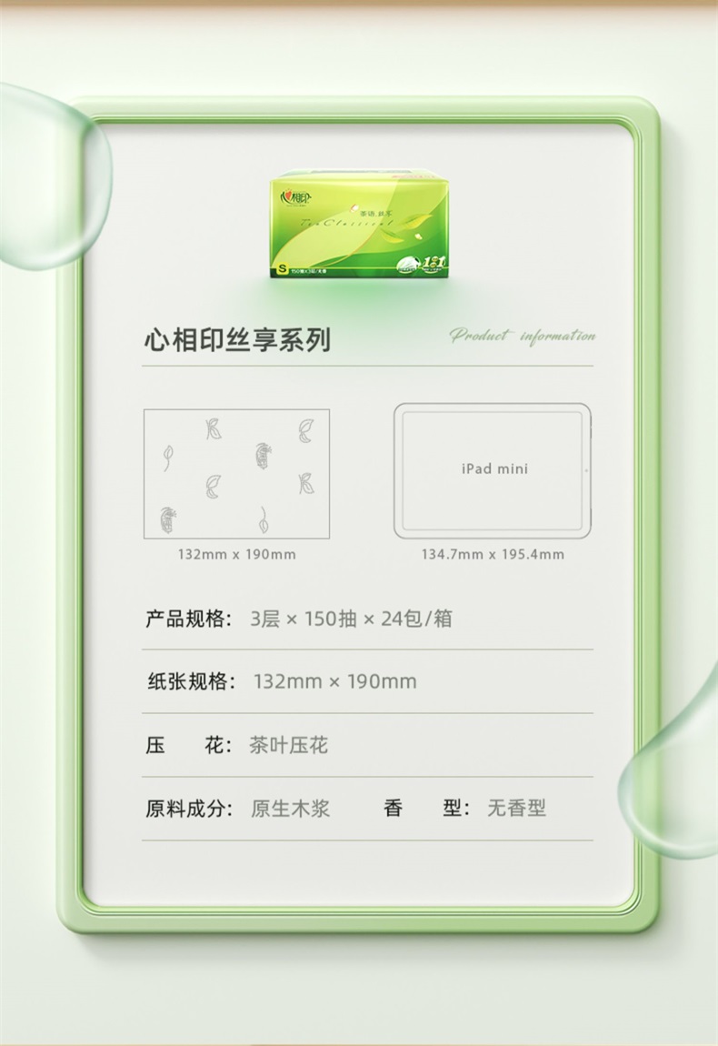 DT15150(箱装)心相印茶语丝享系列150抽*24包三层塑装纸面巾