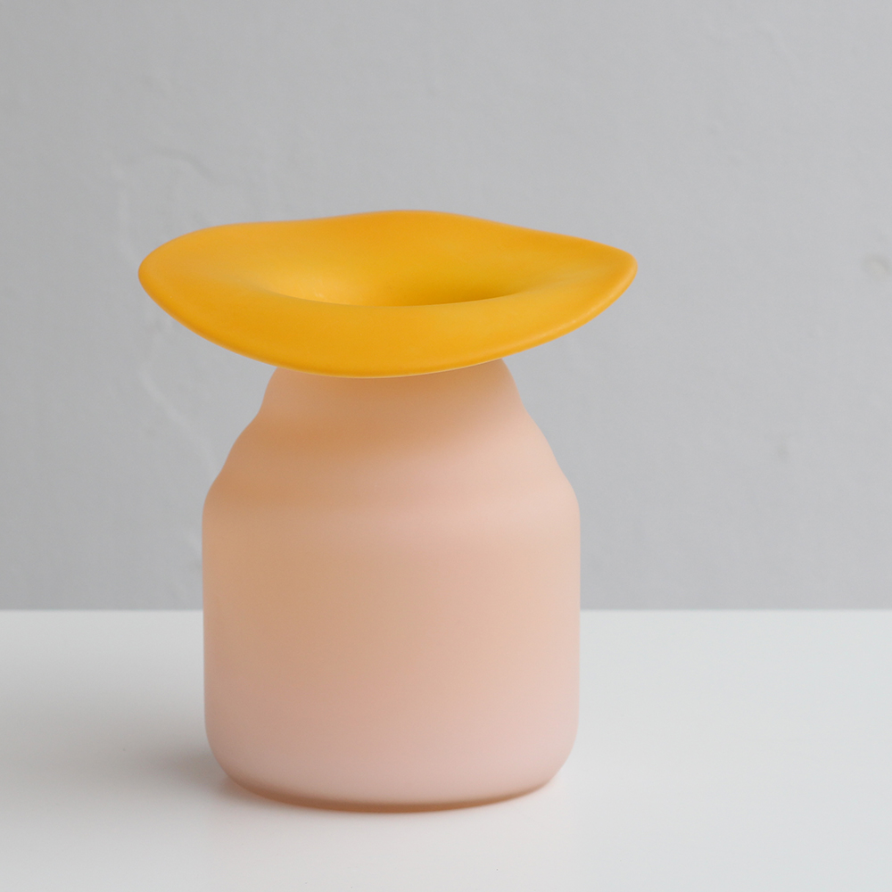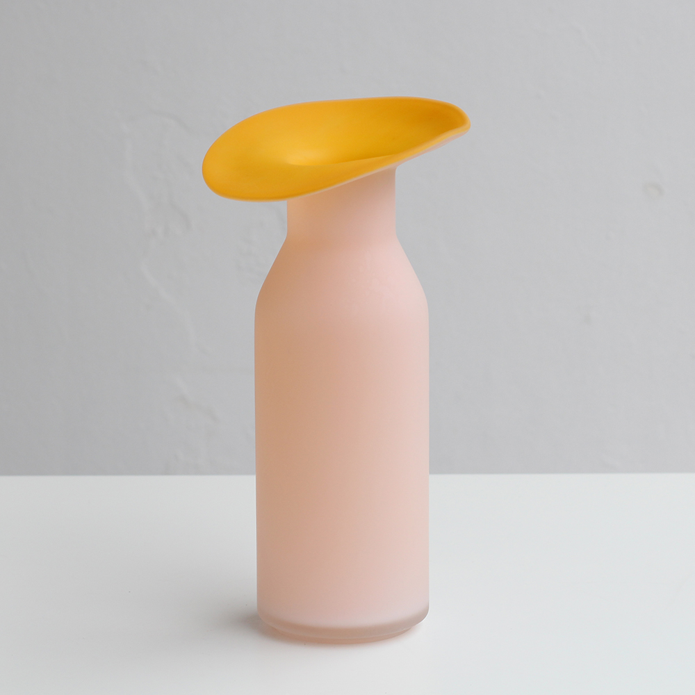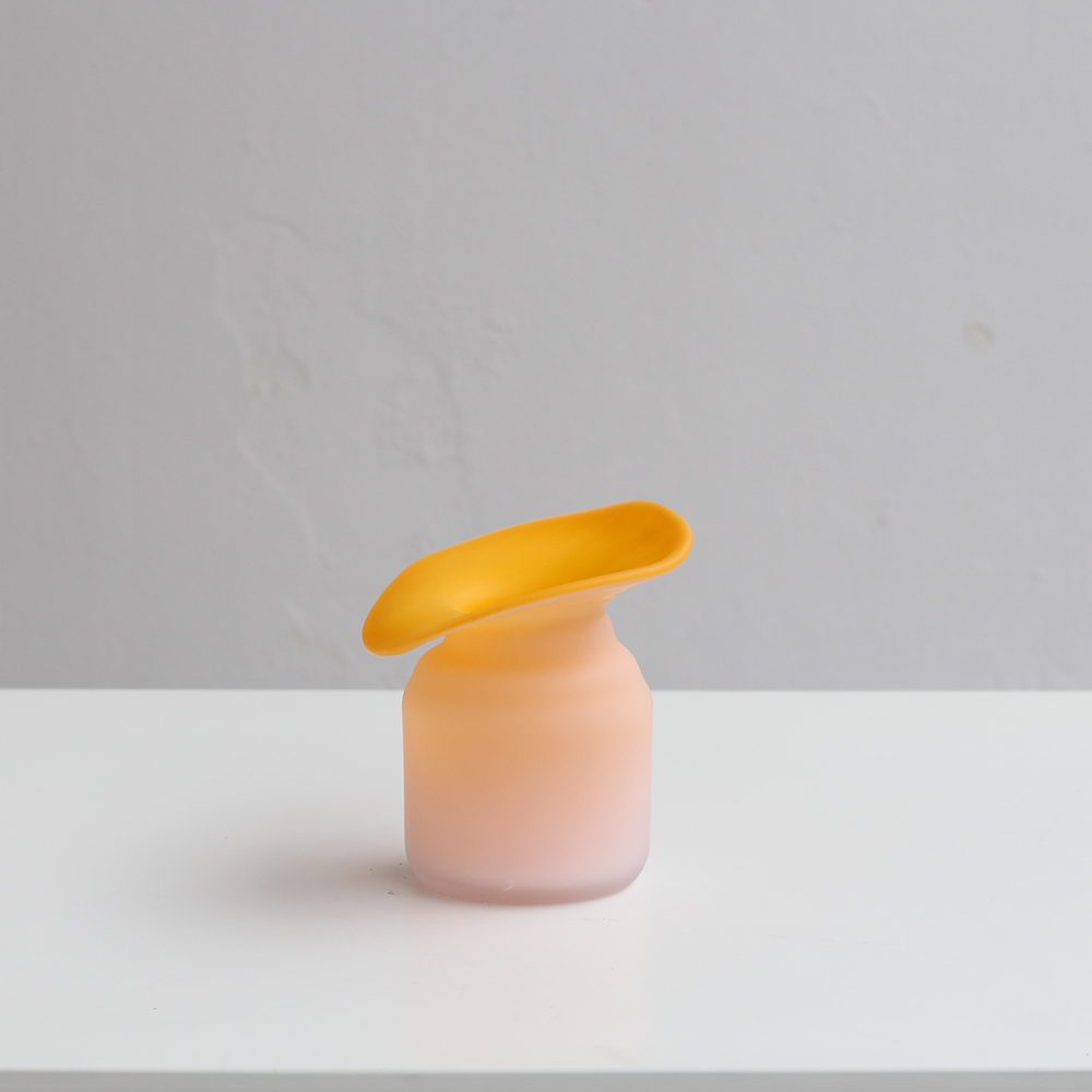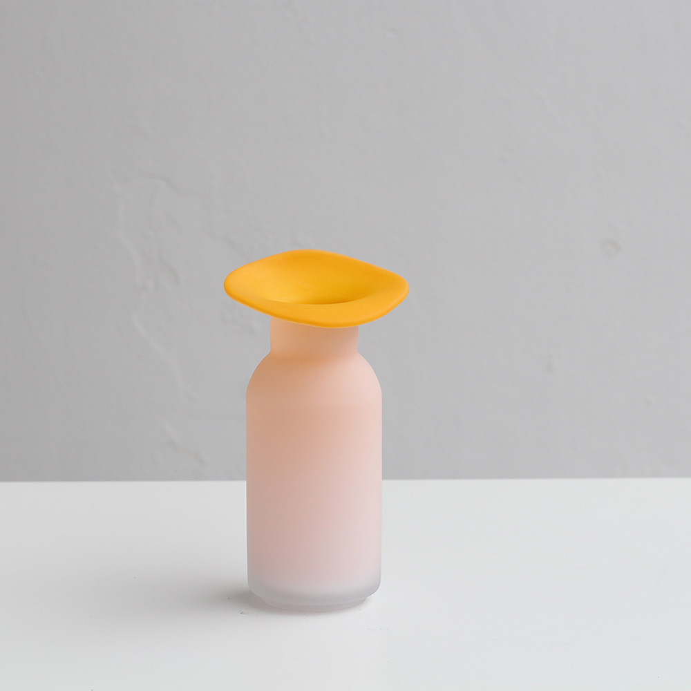磁粉内桔黄外烤白玻璃花瓶摆件工艺品