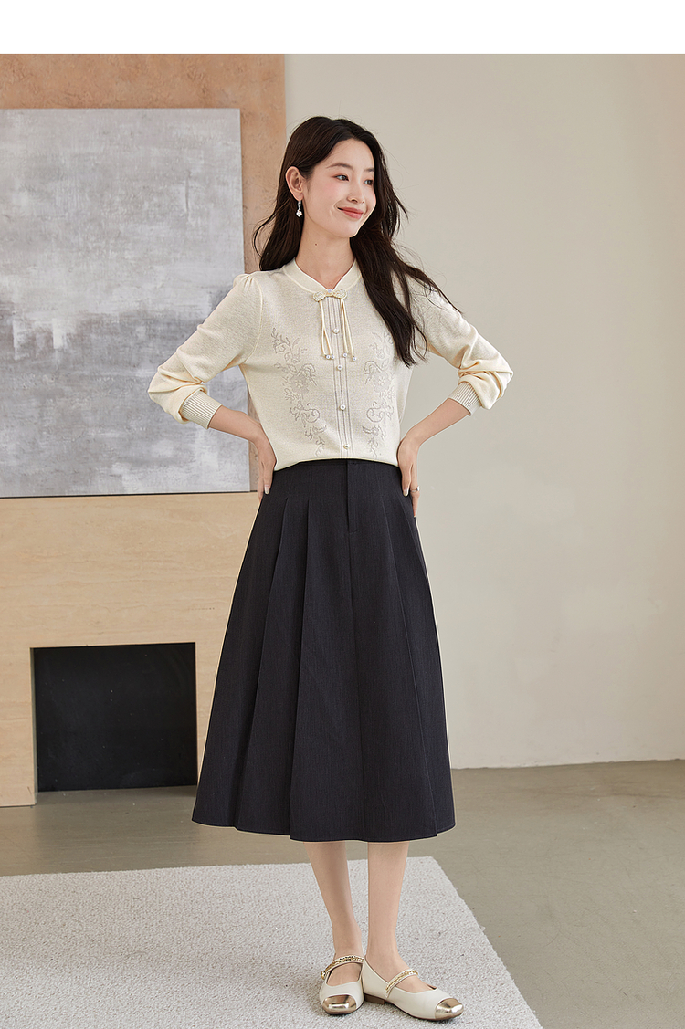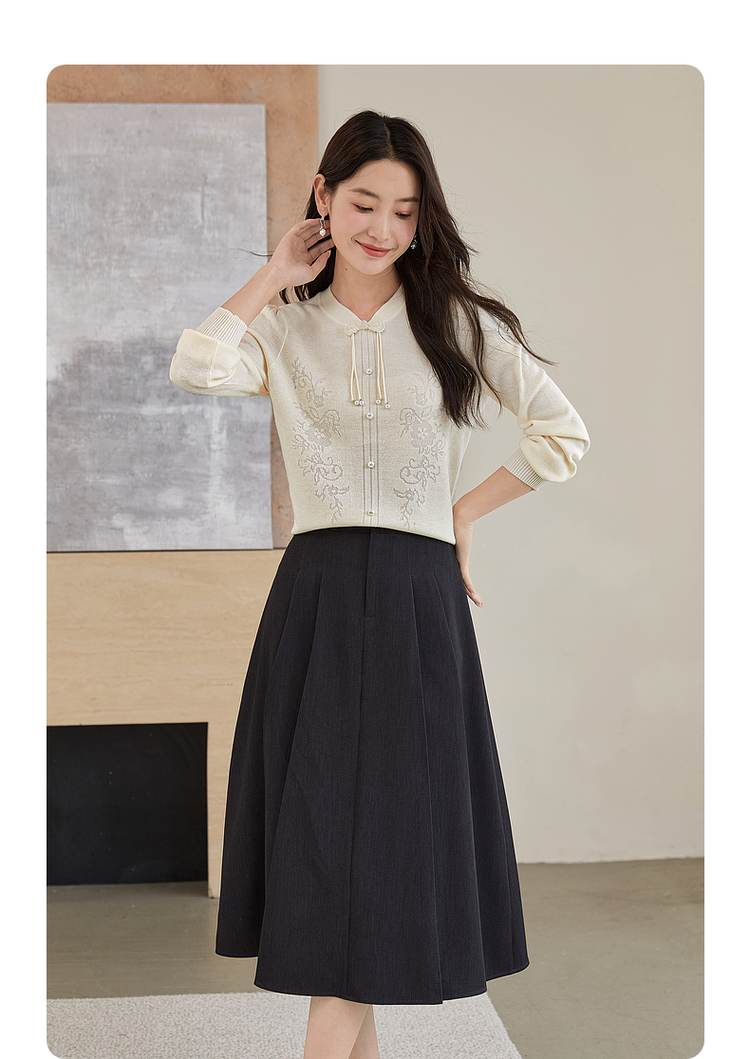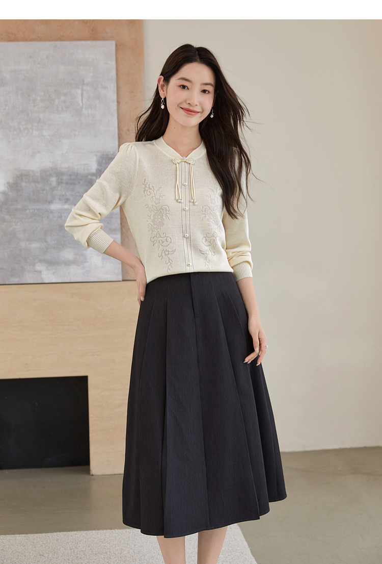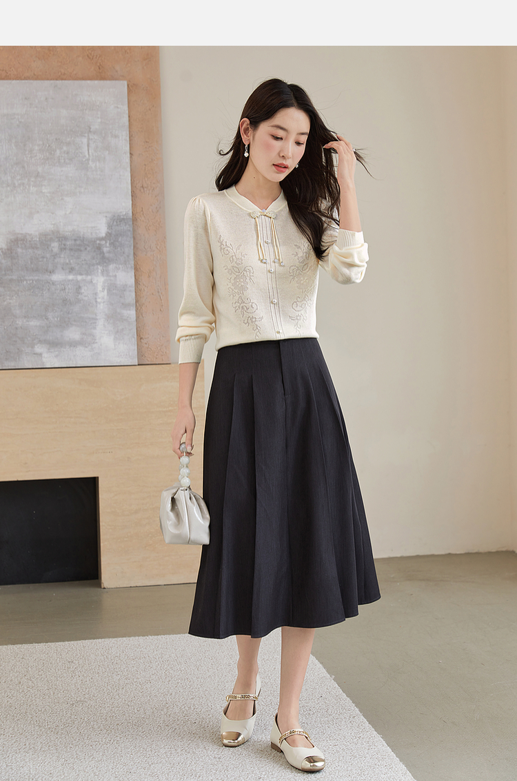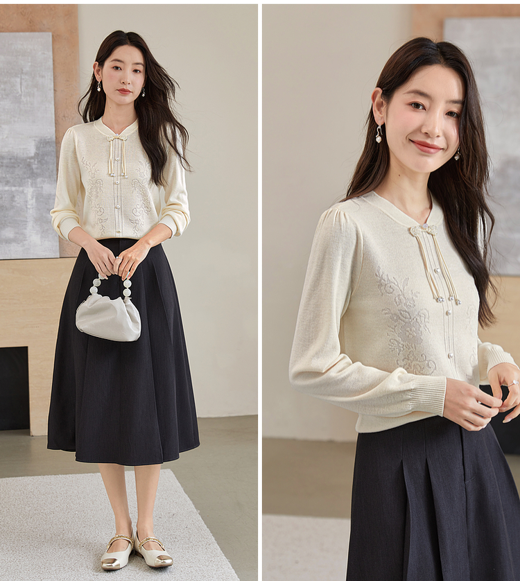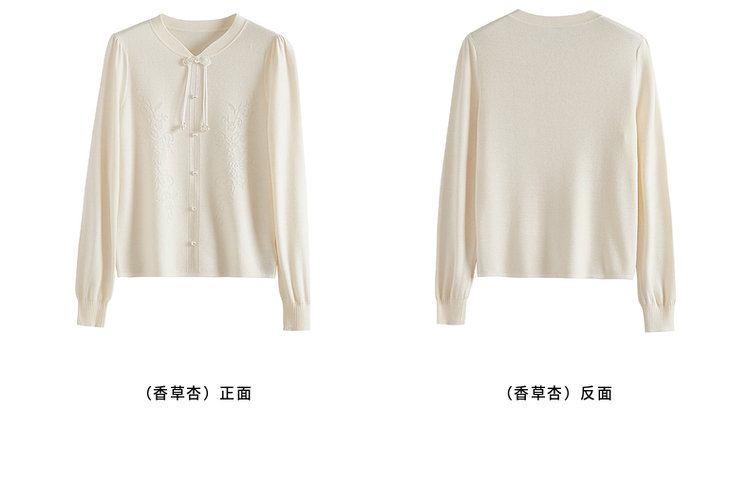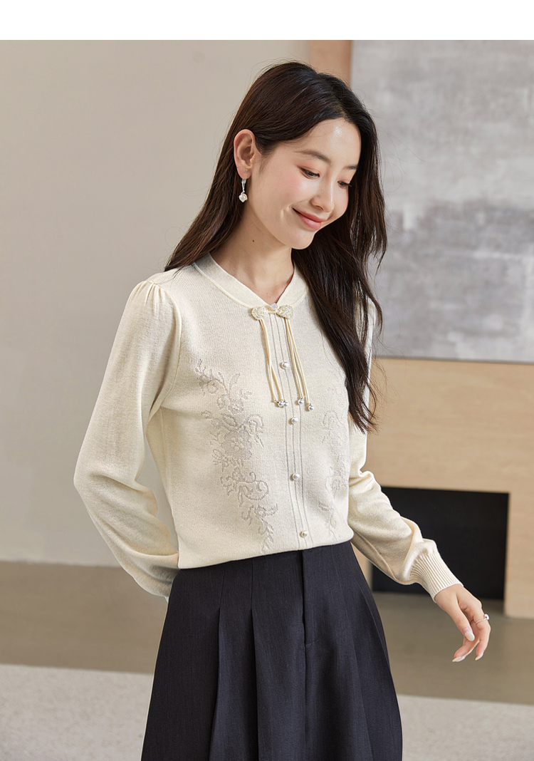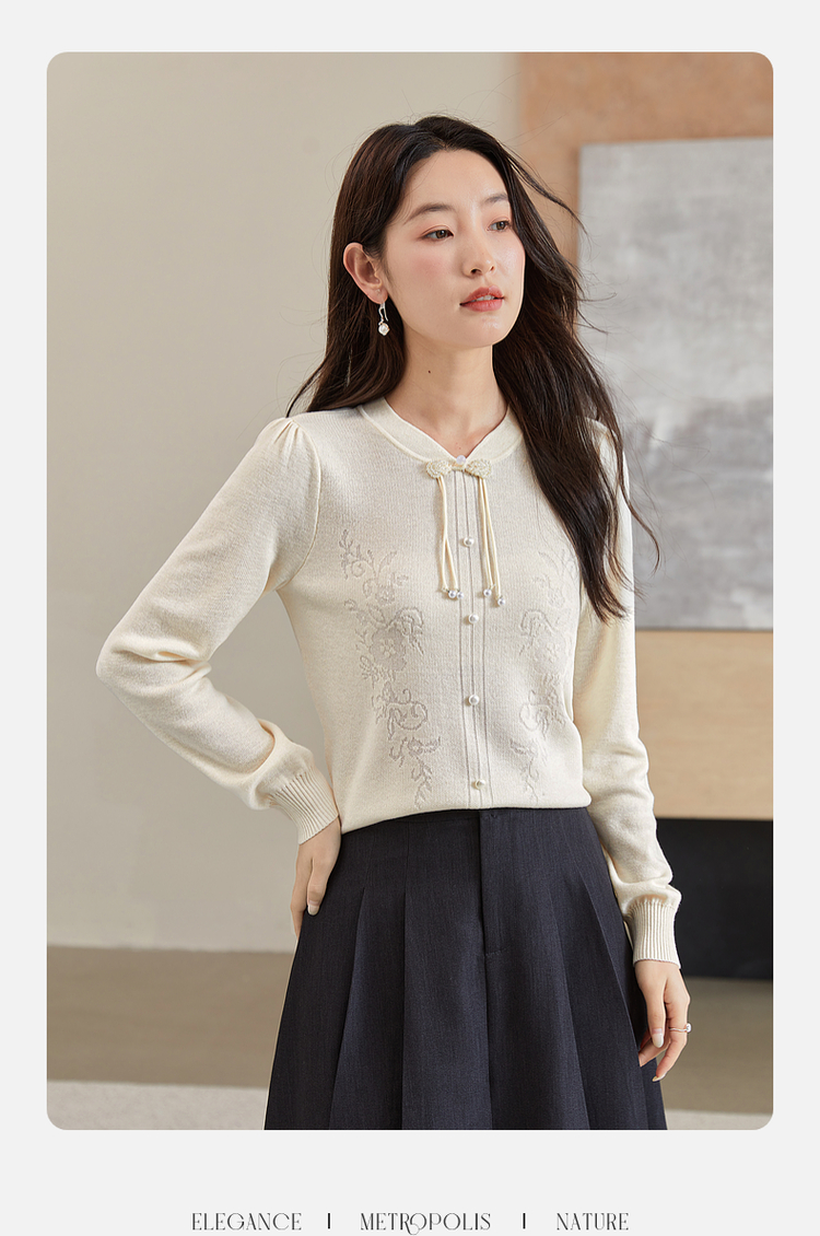 【69元福袋,不支持退换】熙世界新中式暗纹提花针织衫2025秋季新款珍珠盘扣正肩国风上衣