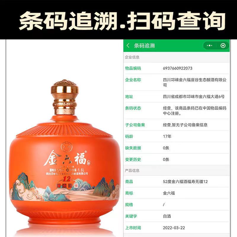 [金六福福寿无疆12]52度-白酒礼盒装1500mL大坛装浓香型粮食酒送礼酒
