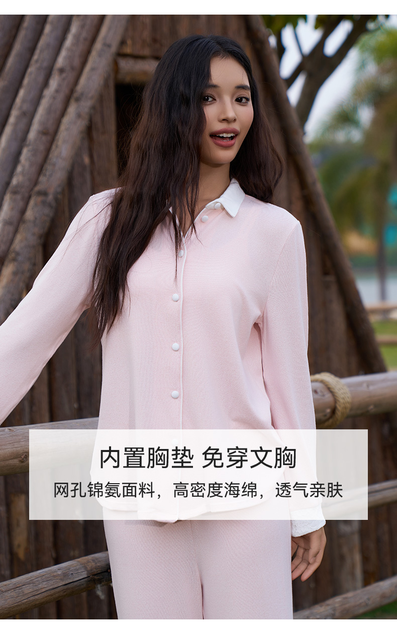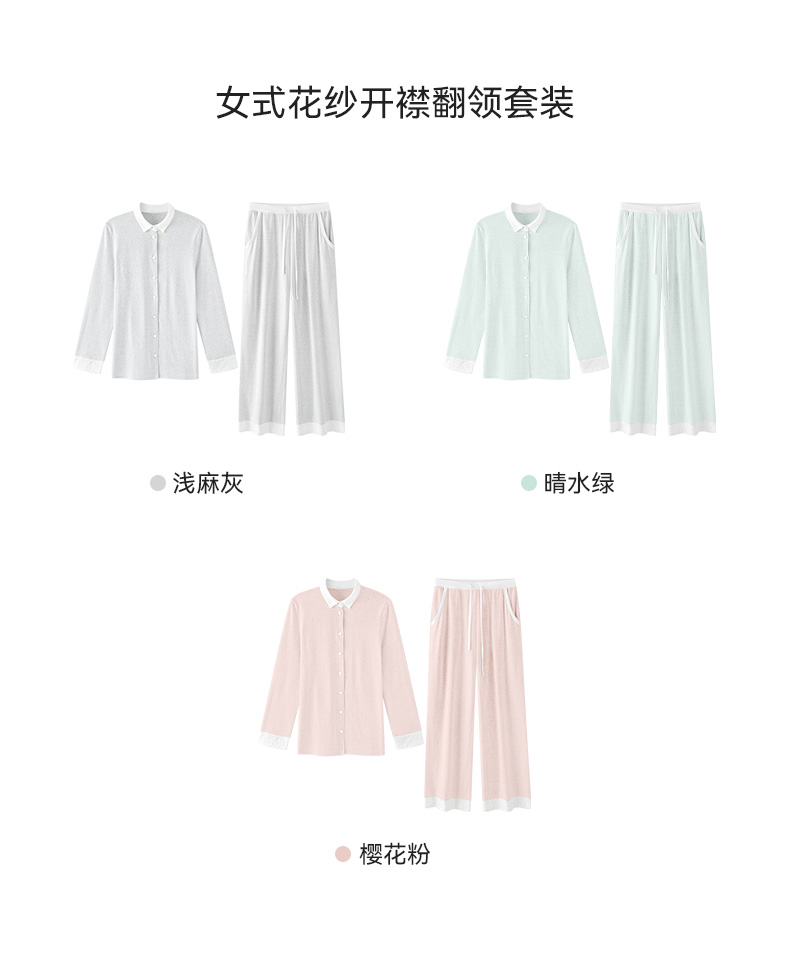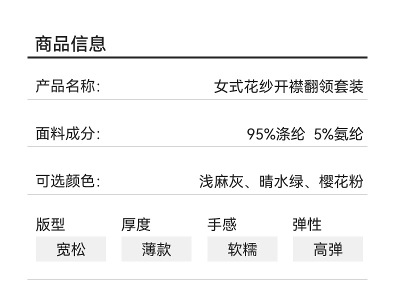 爱帝 女式花纱开襟翻领套装(胸垫款)