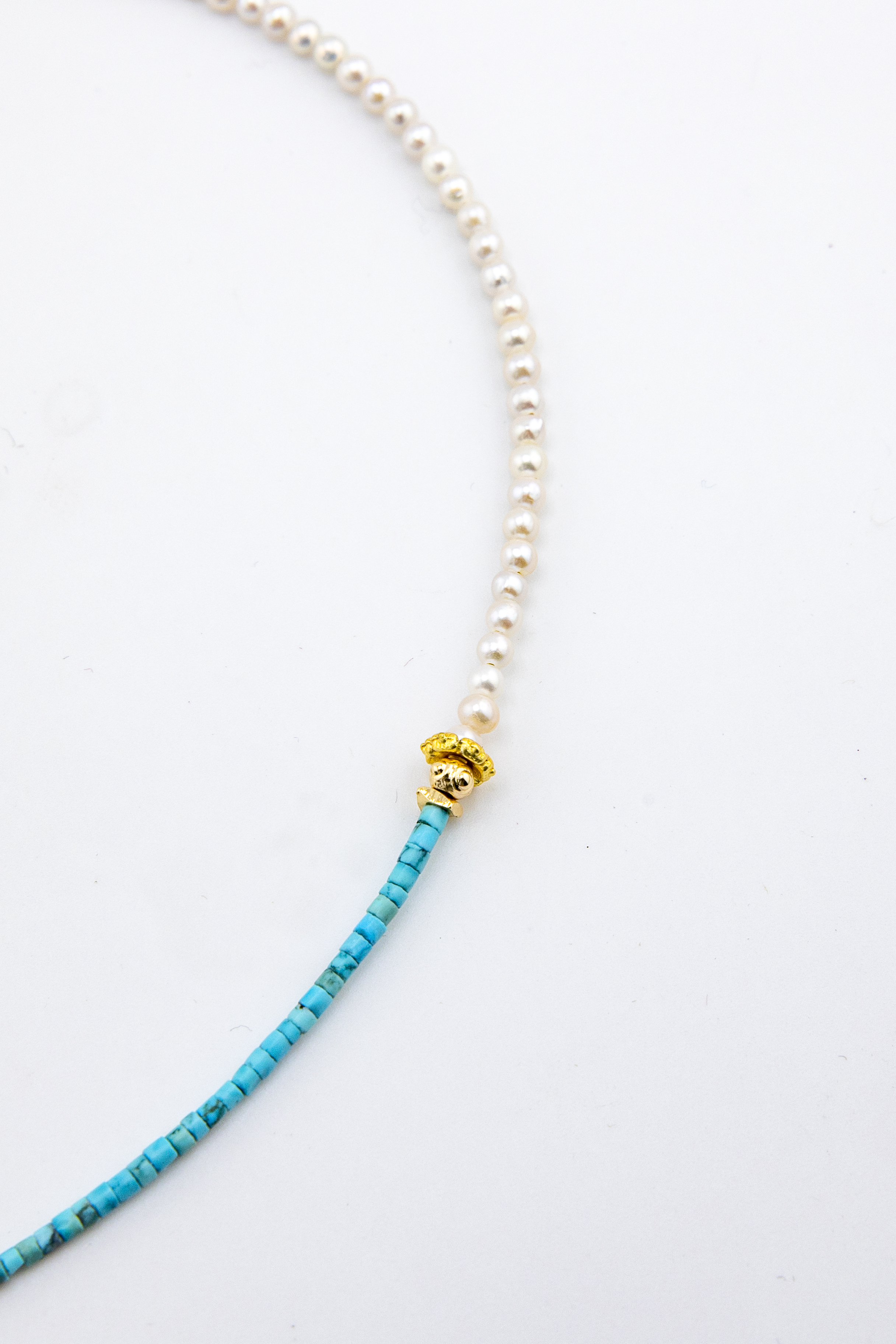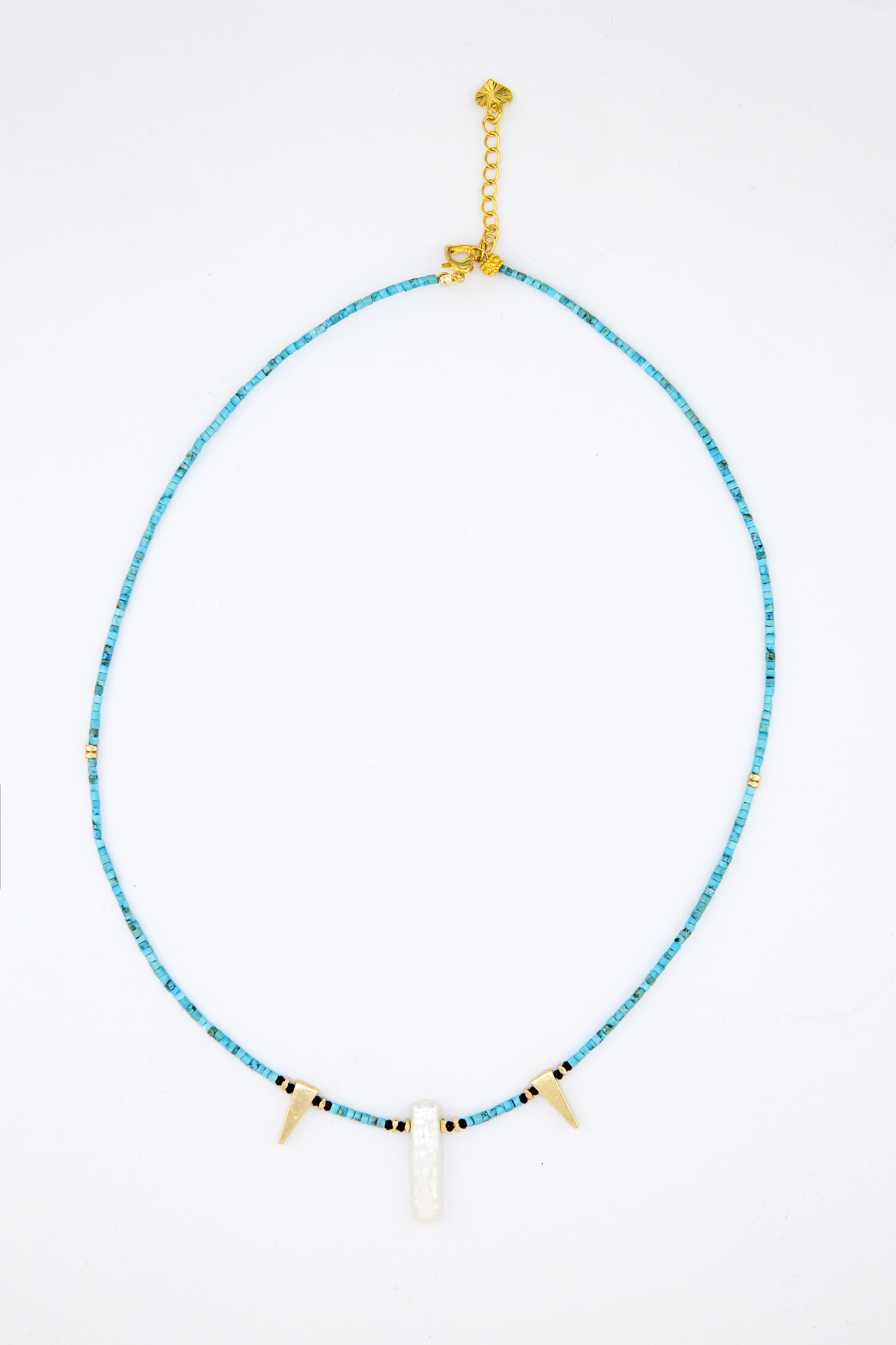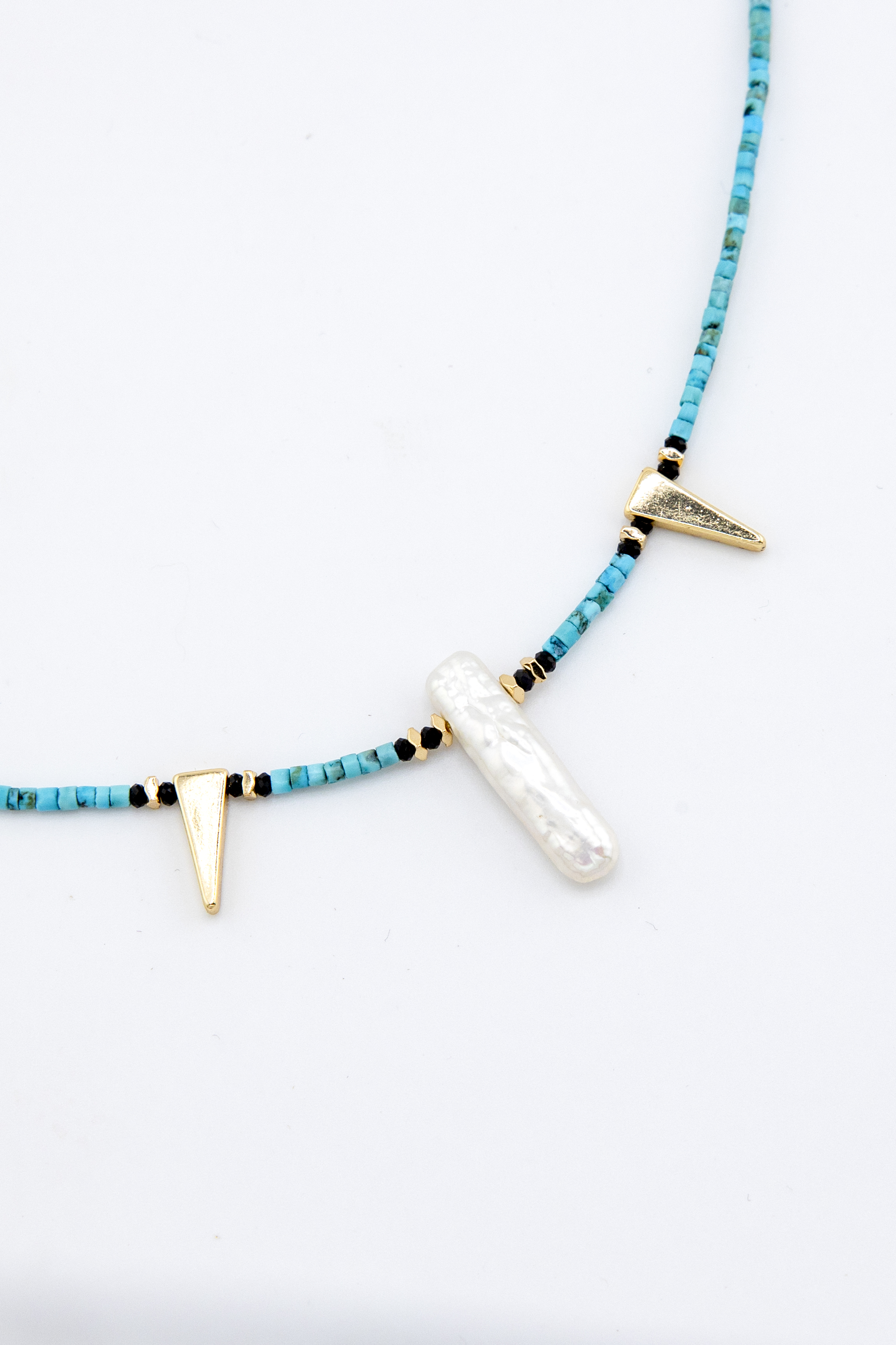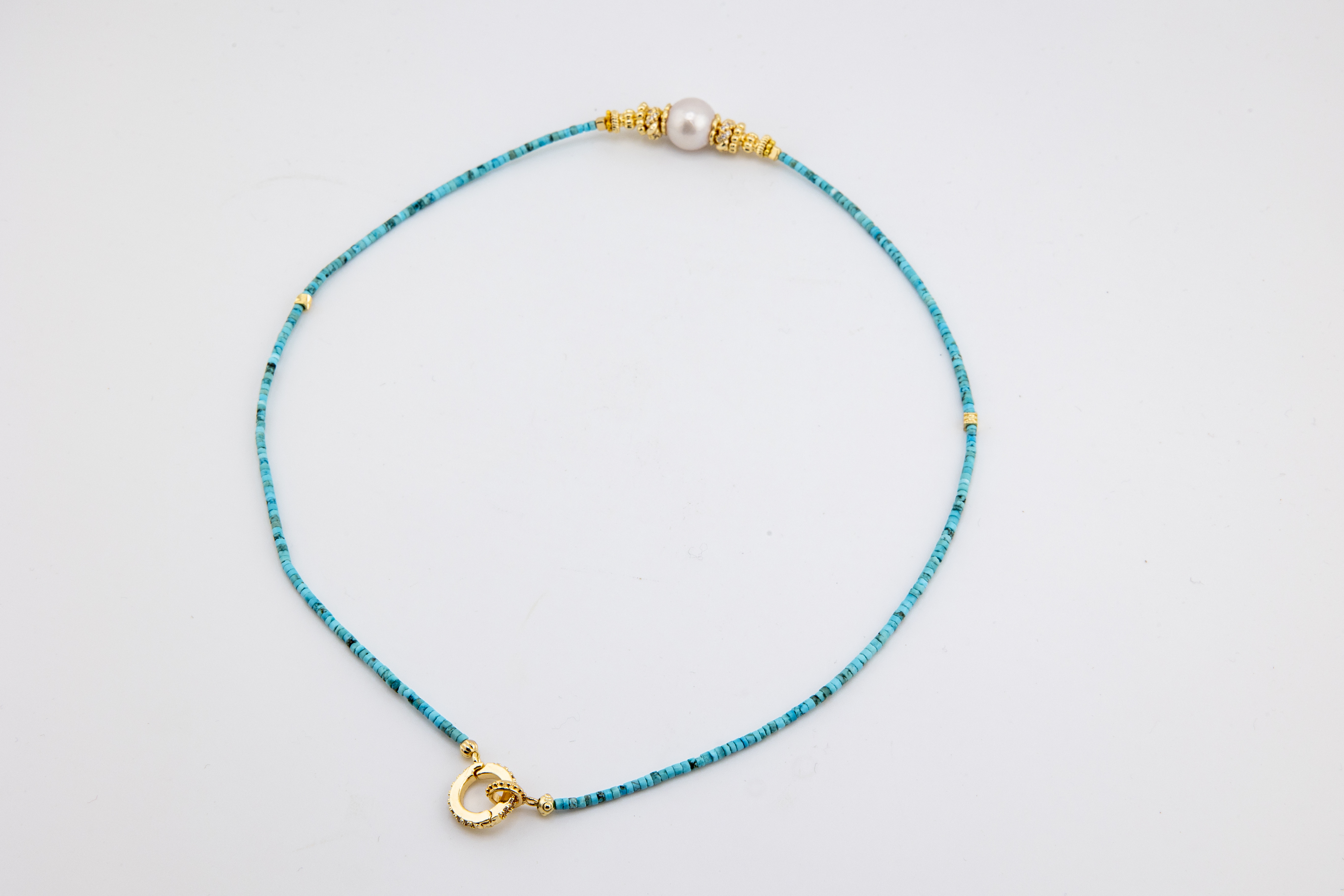 【设计说明】1.天然无加色绿松石,12月生辰玉,象征胜利与好运,纯天然原石颜色略微分布不均。2.巴洛克异形珍珠,天然光泽,带天然生长纹,天然不完美,完美不天然。3.扣头为合金配件遇水不褪色,不建议佩戴洗澡,如遇化学产品腐蚀存在掉色风险。