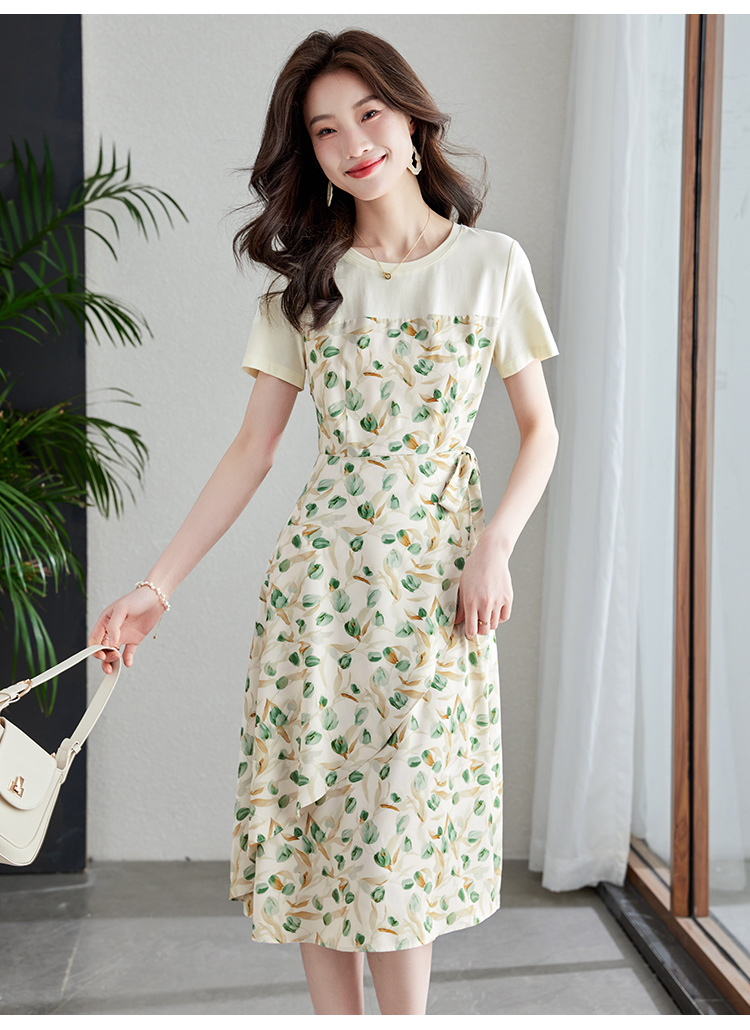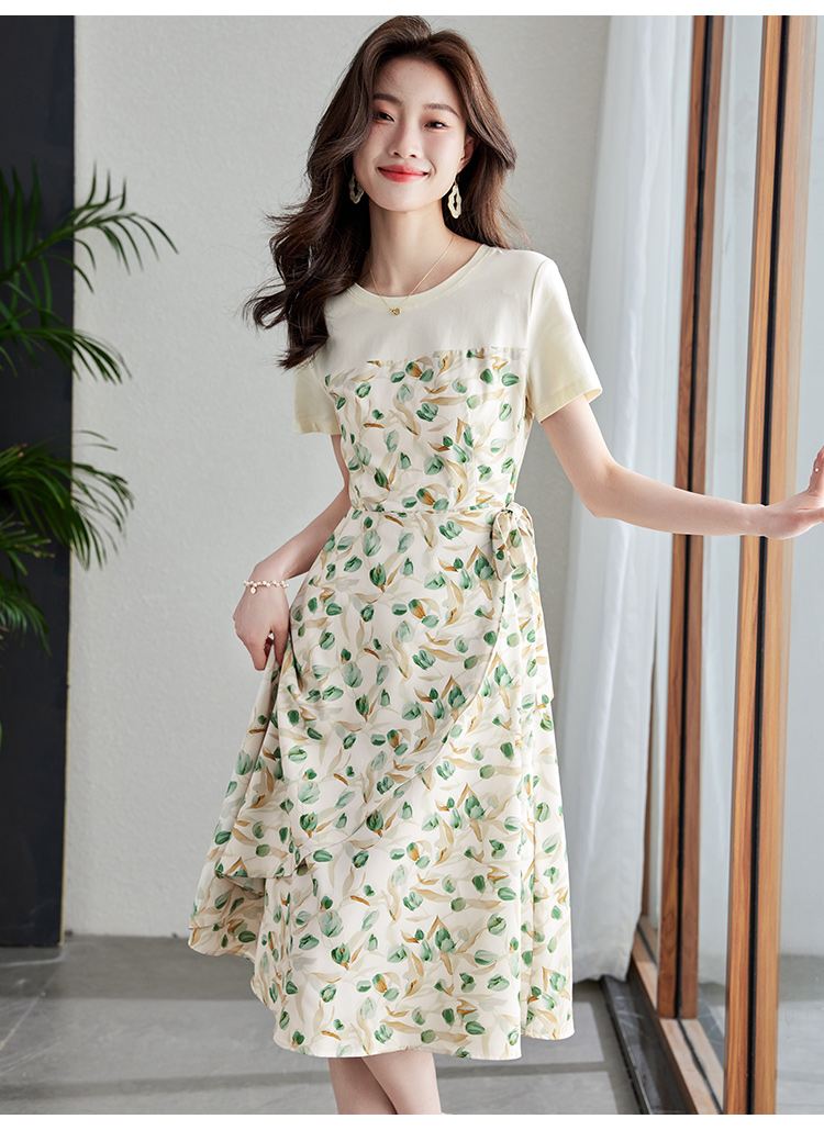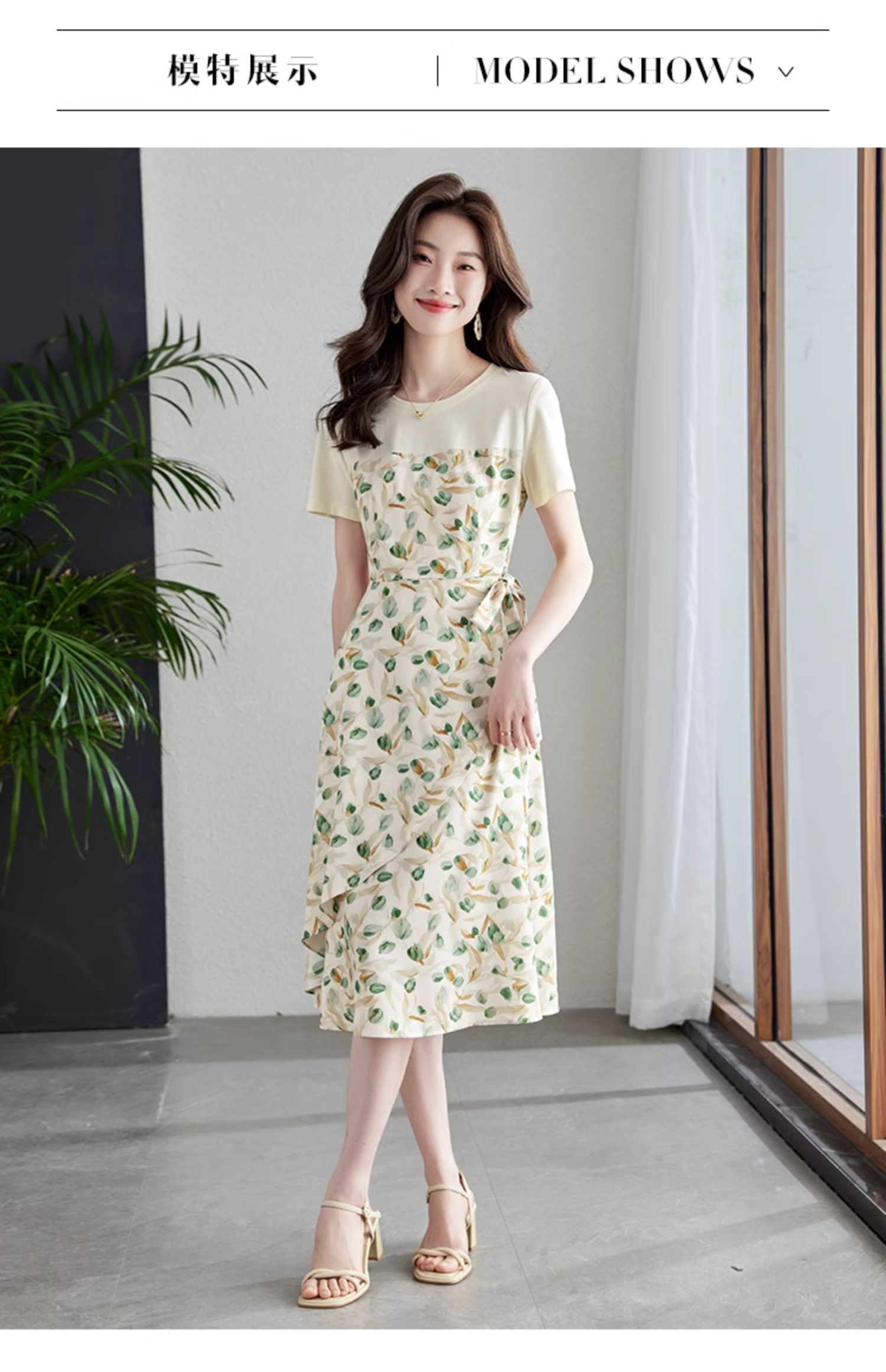 【专属特价】熙世界假两件碎花连衣裙女2025夏季新款短袖圆领不规则荷叶边裙子