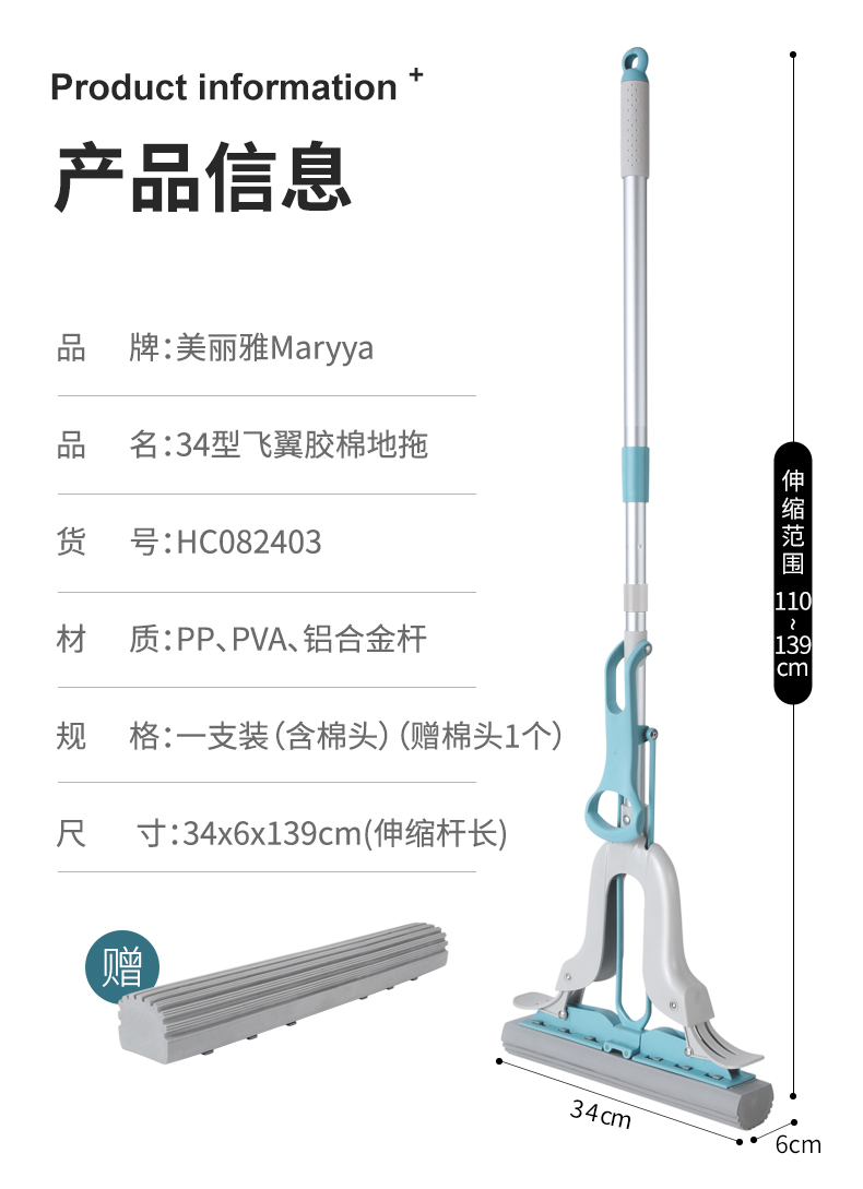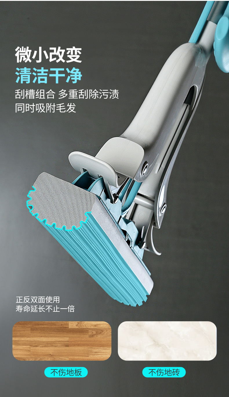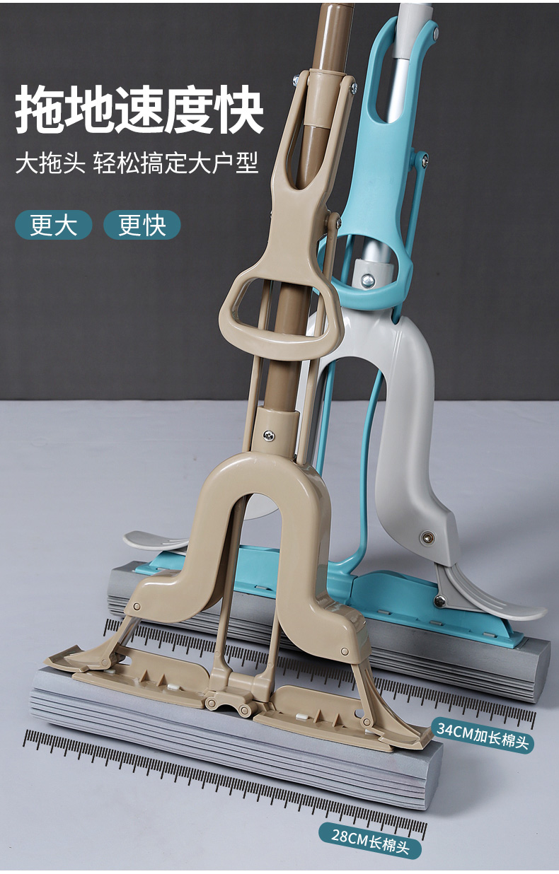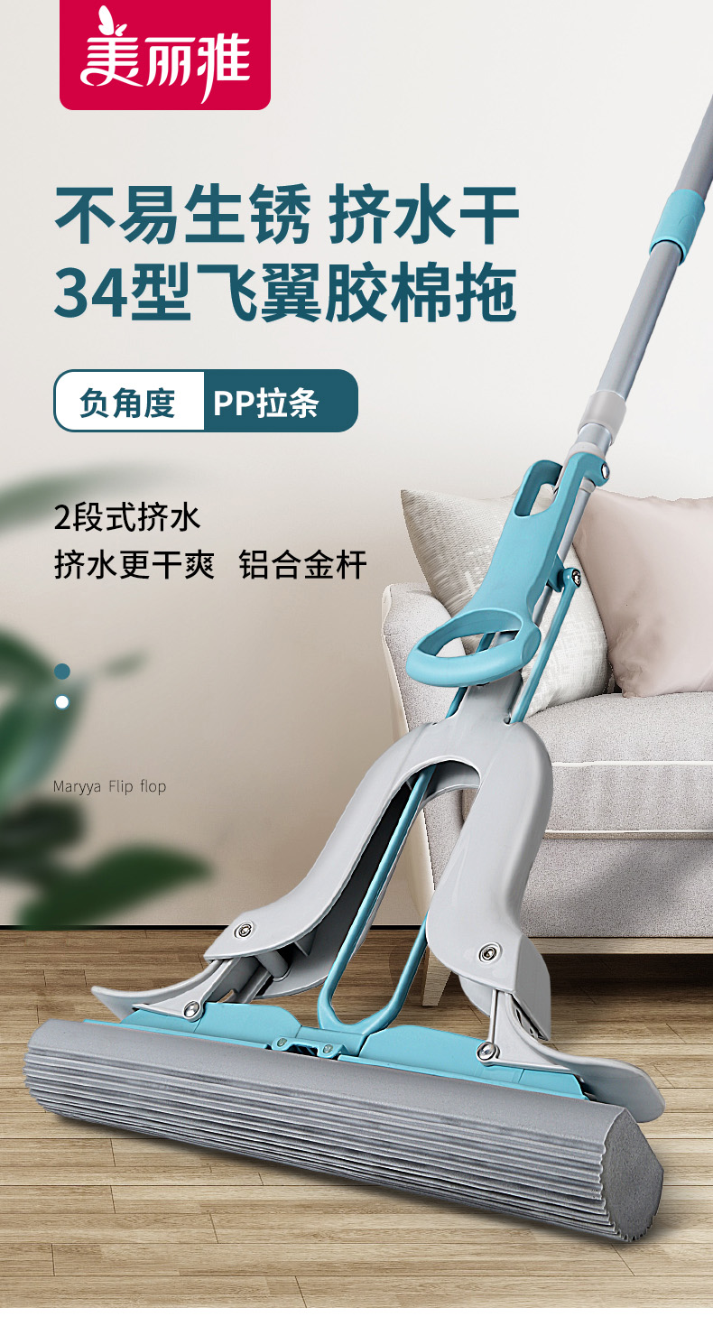 【飞翼铝杆】美丽雅干湿两用懒人免手洗吸水海绵拖把大中小型号