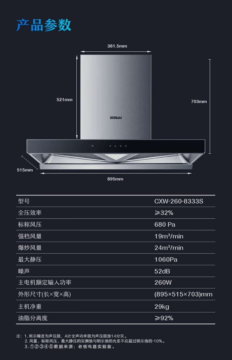 老板CXW-260-8333S欧式顶吸双腔油烟机免拆洗8558S烟机 8333S吸油烟机