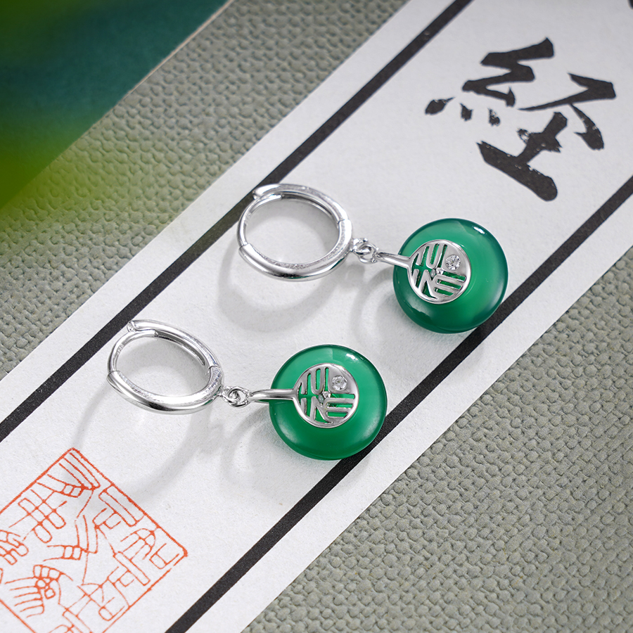【寓意】:耳饰以平安扣为灵感设计,将玉髓与平安扣巧妙融合,呈现干净清新,意趣盎然的格调。秋冬的大衣有它点缀,增添了几分温润之美,更使得整体装扮价值翻倍。