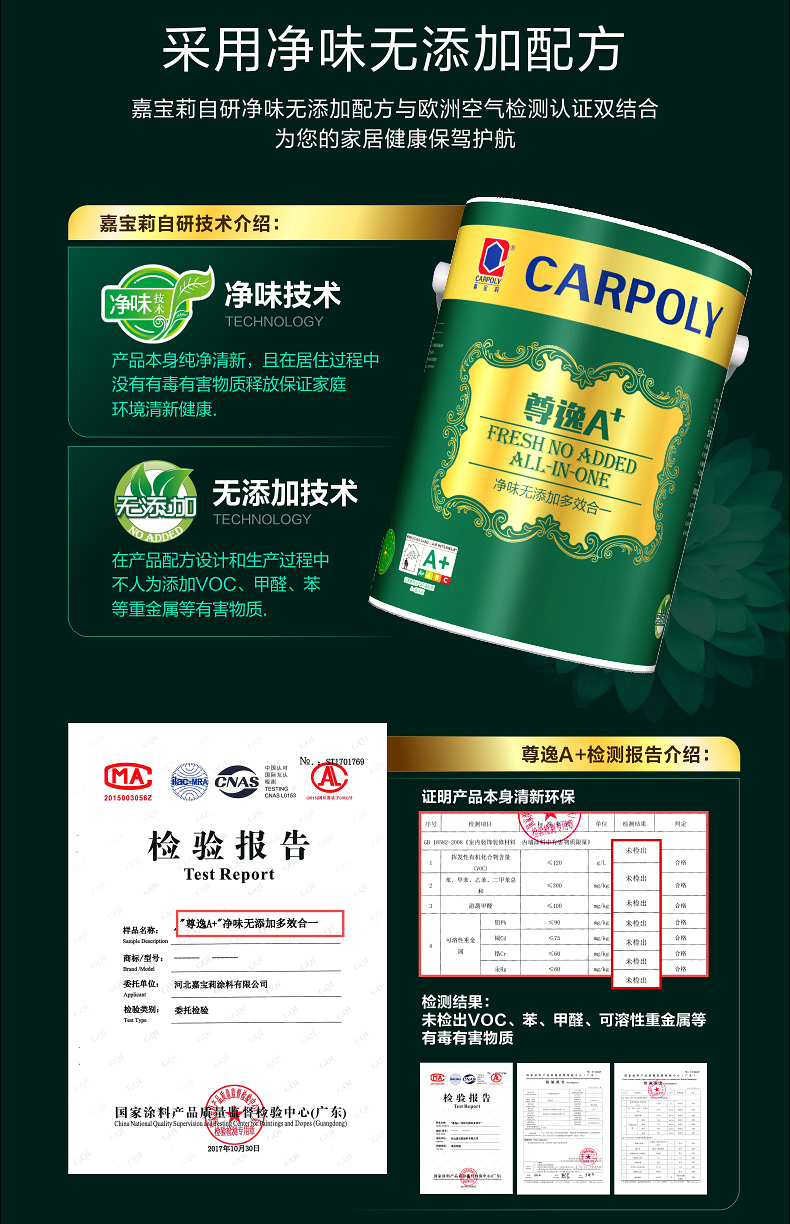 【臻选美居 环保涂料】嘉宝莉乳胶漆 尊逸A+ 净味无添加多效合一