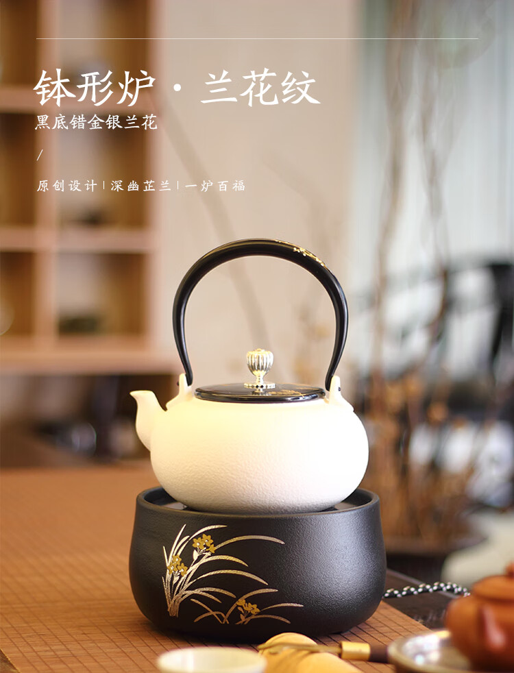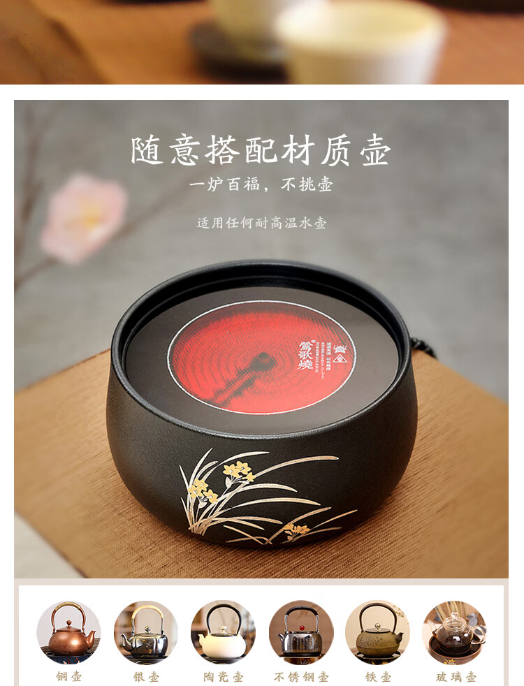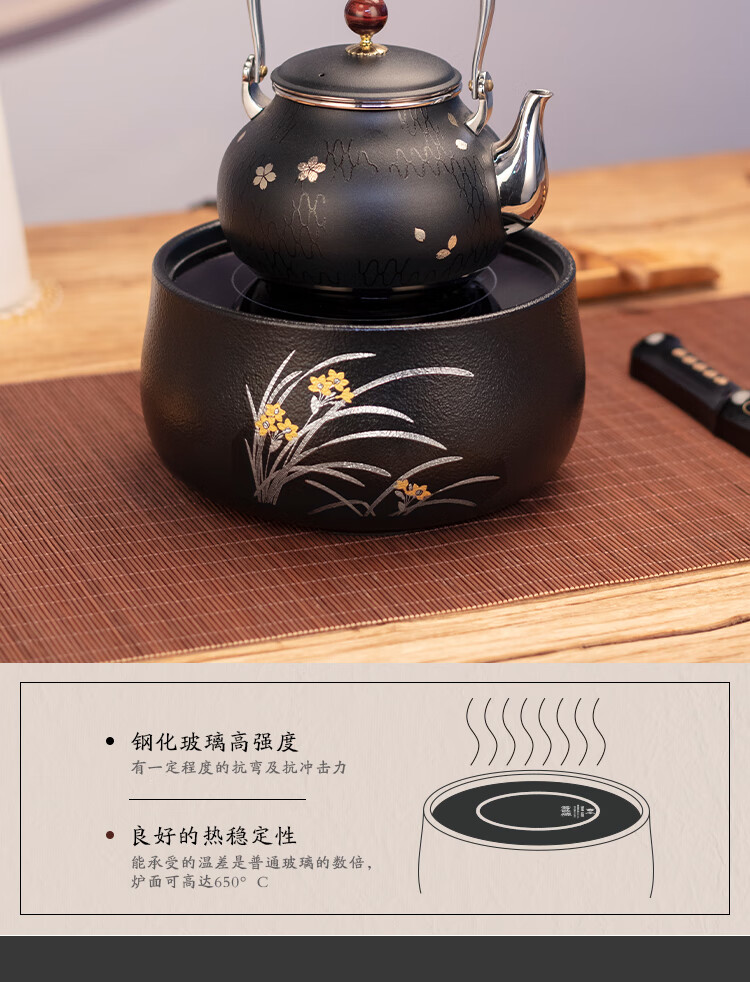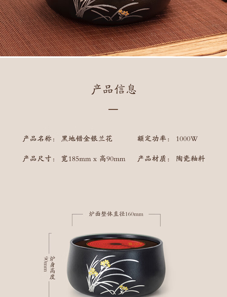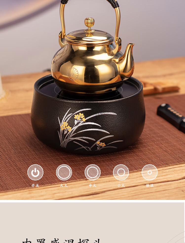 莺歌烧黑底幽兰电陶炉轻音茶炉兰花家用红外小型迷你烧水煮茶器围炉煮茶 幽蘭【厂家直发】