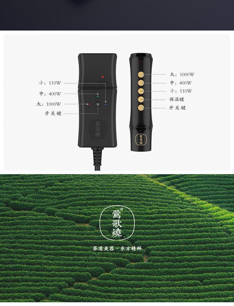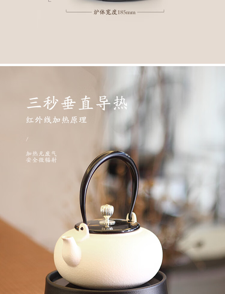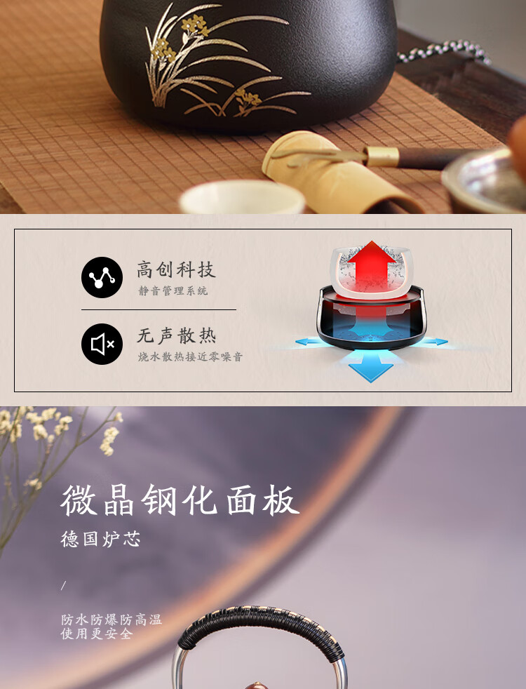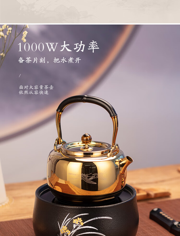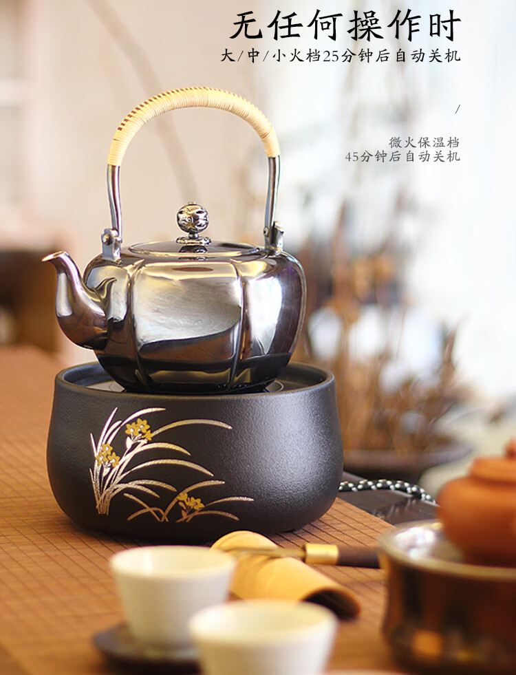莺歌烧黑底幽兰电陶炉轻音茶炉兰花家用红外小型迷你烧水煮茶器围炉煮茶 幽蘭【厂家直发】