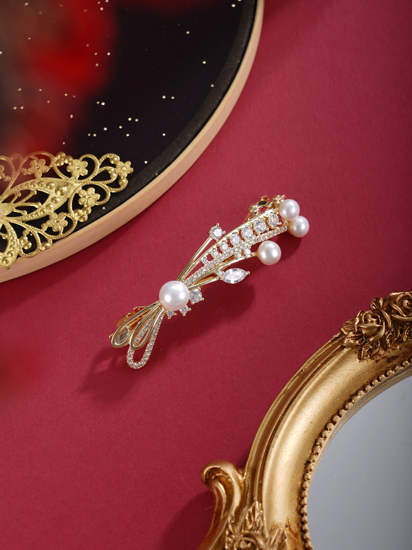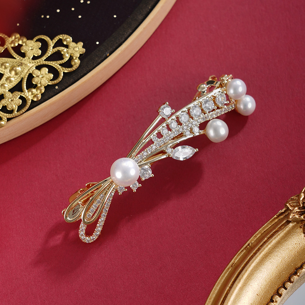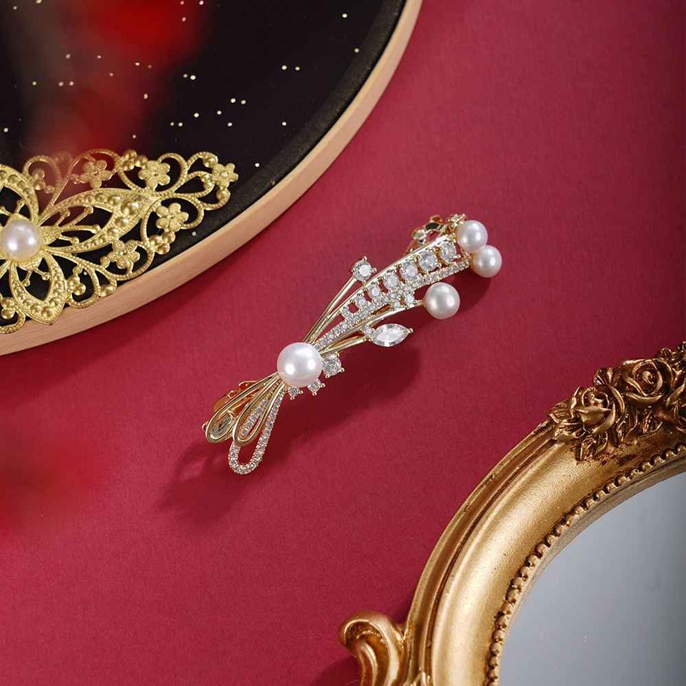 子佩集【岁岁璀璨】珍珠惜王妃发夹【HBFJ028】5.7-7.7mm珠镀金麦穗蝴蝶结2601