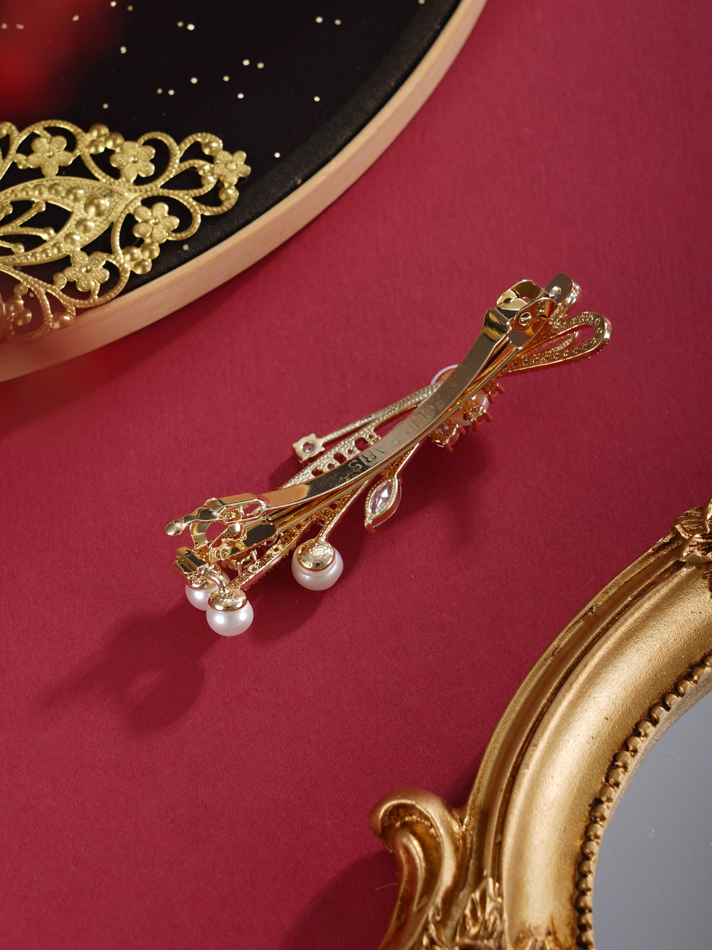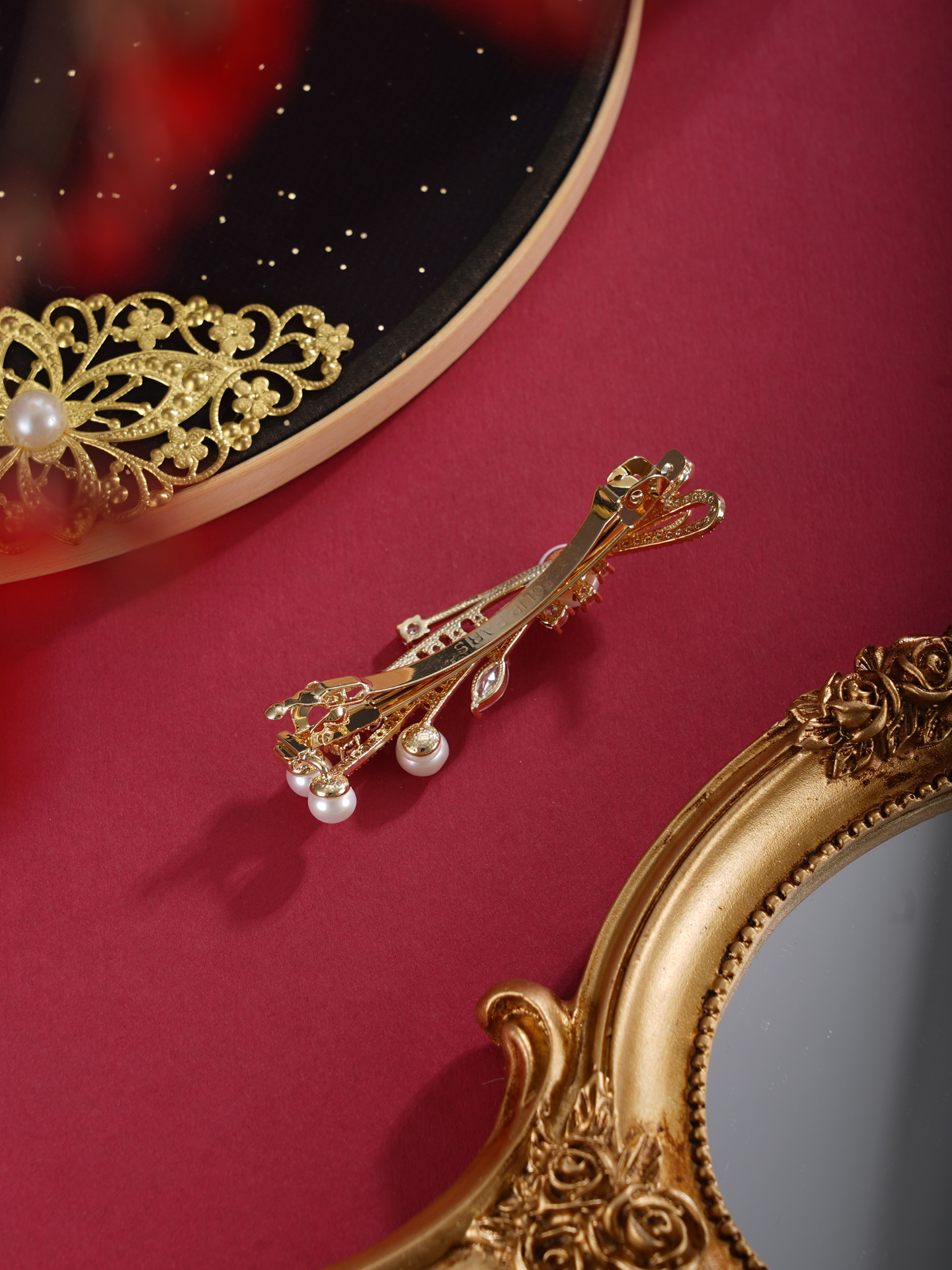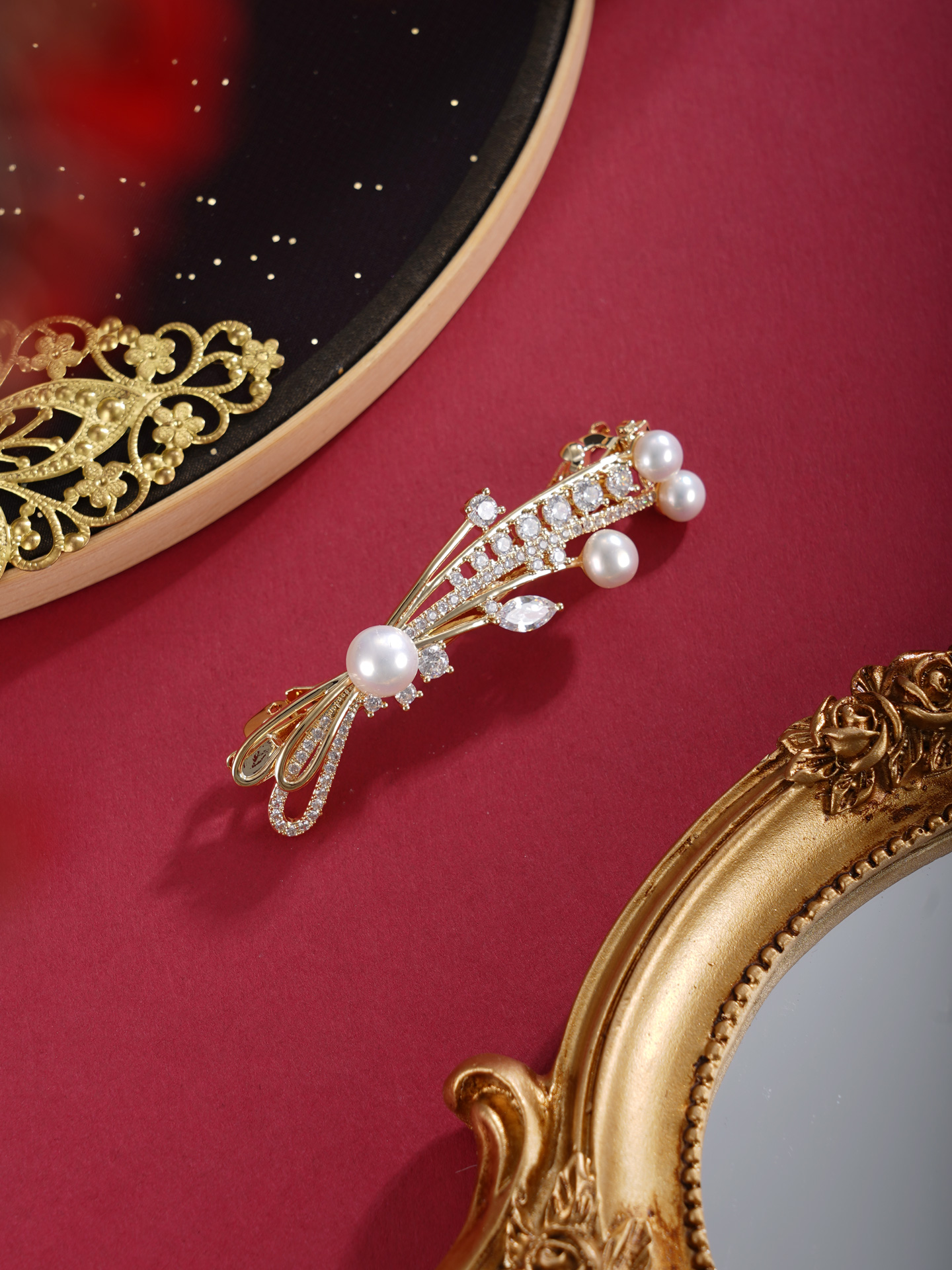 子佩集【岁岁璀璨】珍珠惜王妃发夹【HBFJ028】5.7-7.7mm珠镀金麦穗蝴蝶结2601