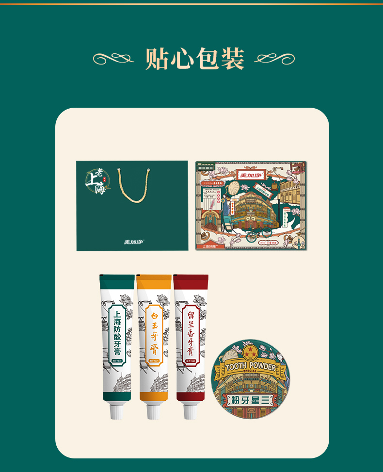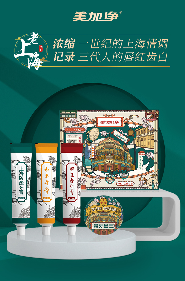 2021新品上市 美加净老上海国风礼盒 纪念典藏版 内含(3支牙膏、1盒三星牙粉)