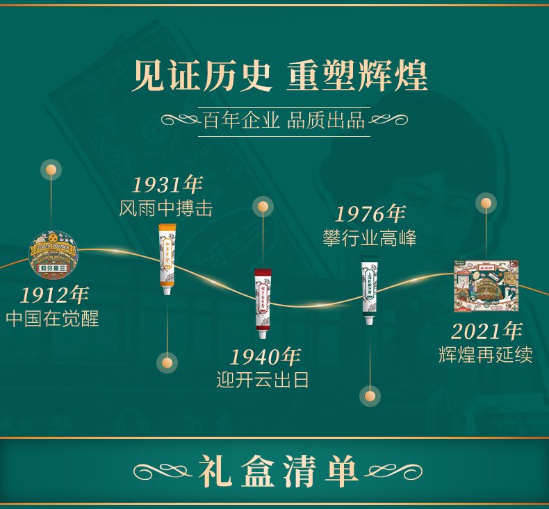 - 【107年企业历史】前身“中国化学工业社”,创建于1912年,后又更名为“国营上海牙膏厂”至今已有107年企业历史;国企背景,真正的国货