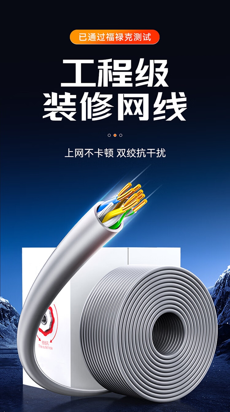 爆款★热销@工程包检【过专业网分仪+FLUKE福禄克测试】超五类非屏蔽CAT5e UTP4对双绞线POE供电 监控工程传输200米千兆高速传输数据中心机房网络布线一站式采购