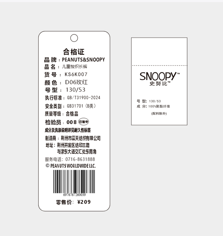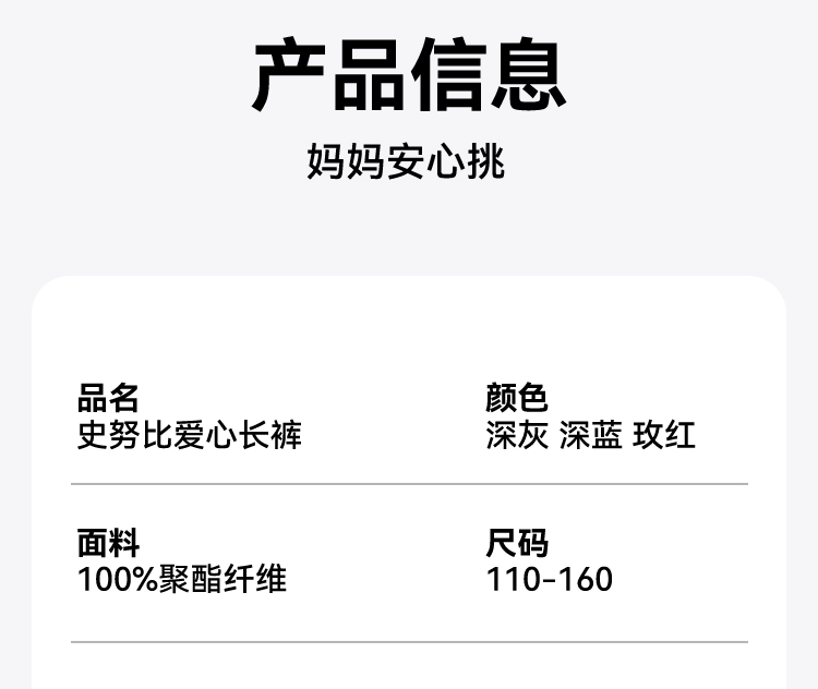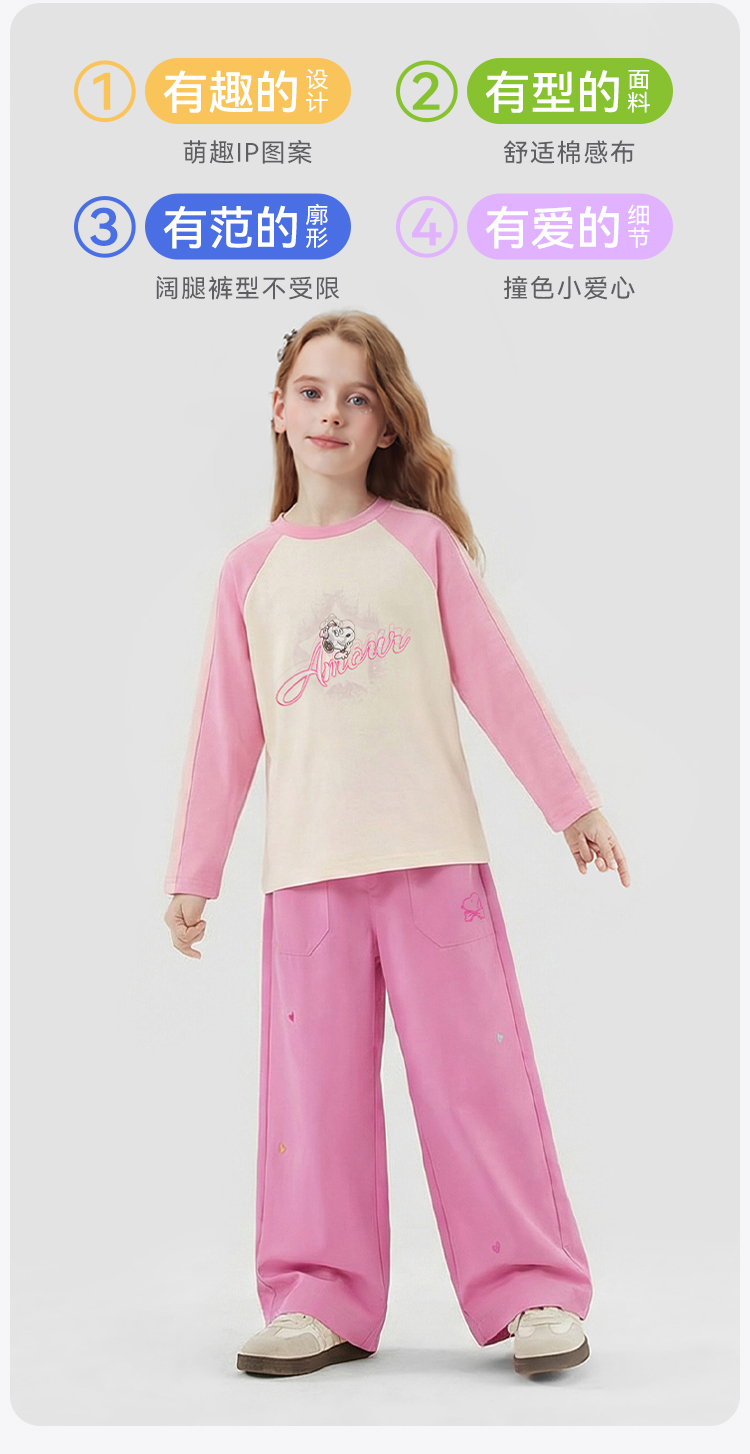 【110-160】【史努比】女童休闲阔腿裤