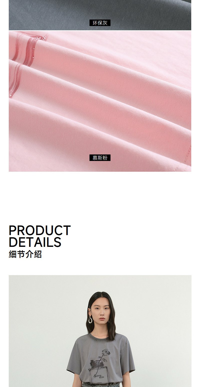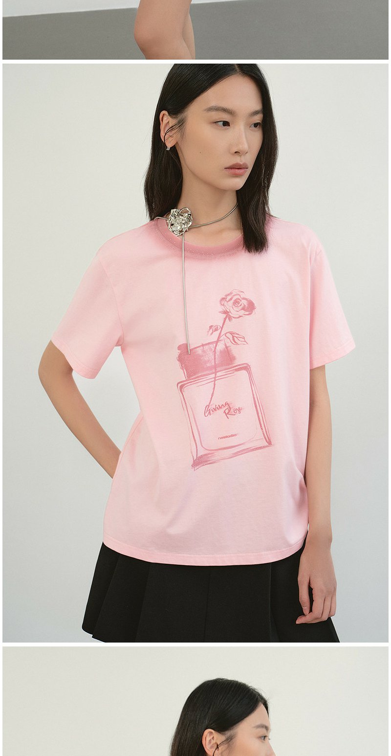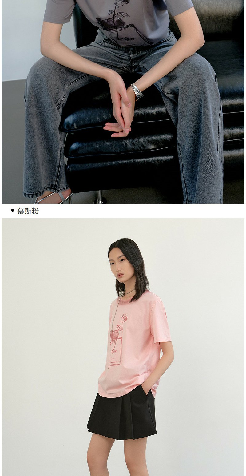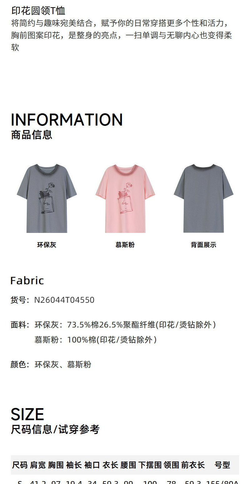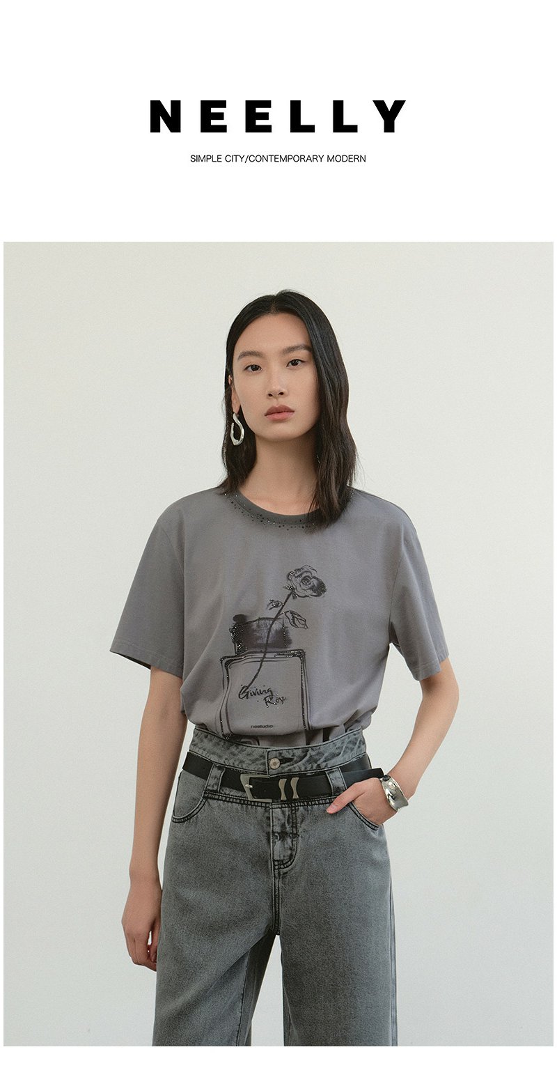 NEELLY纳俪商场同款夏季新款圆领印花短袖T恤女减龄透气感上衣N26044T04550