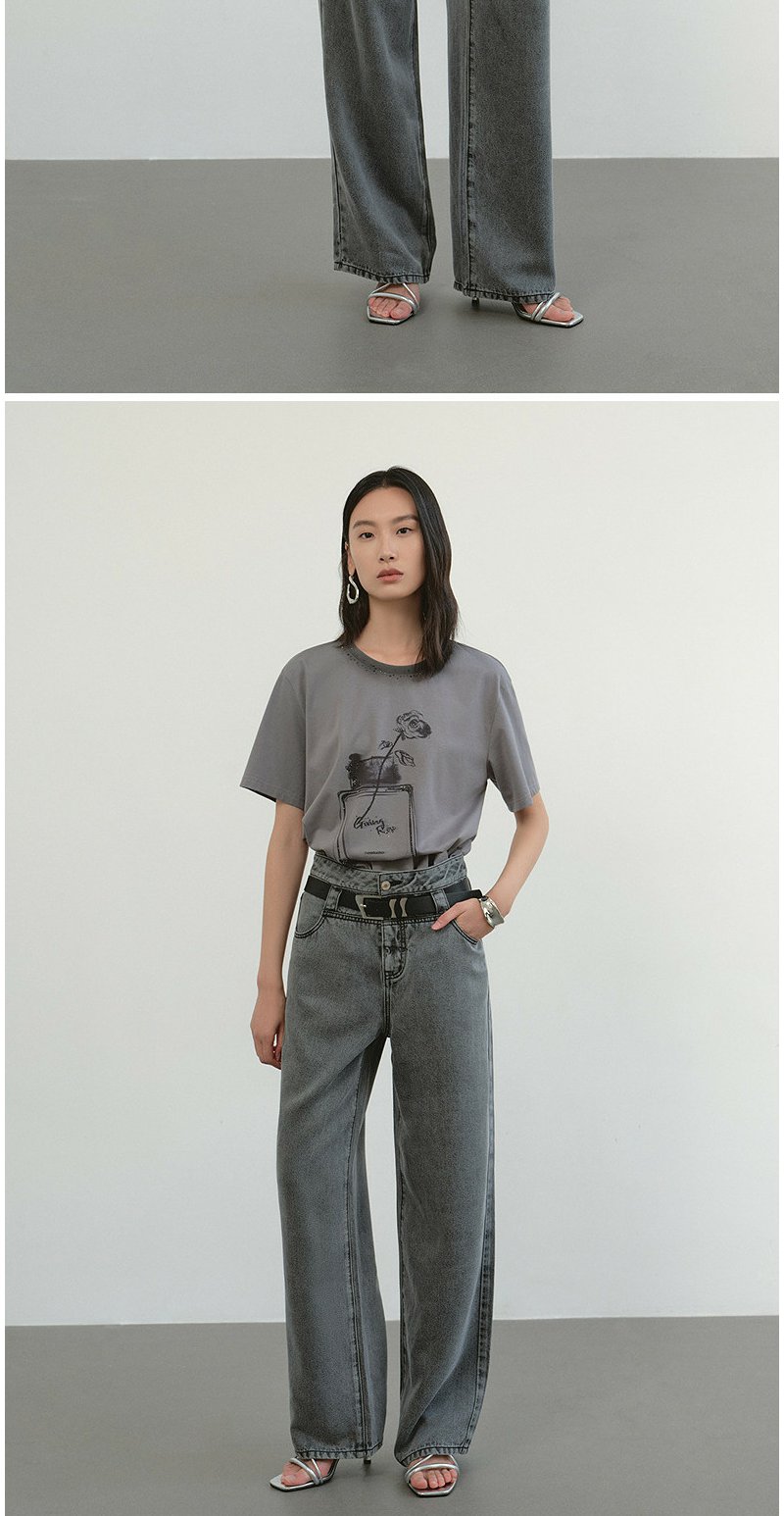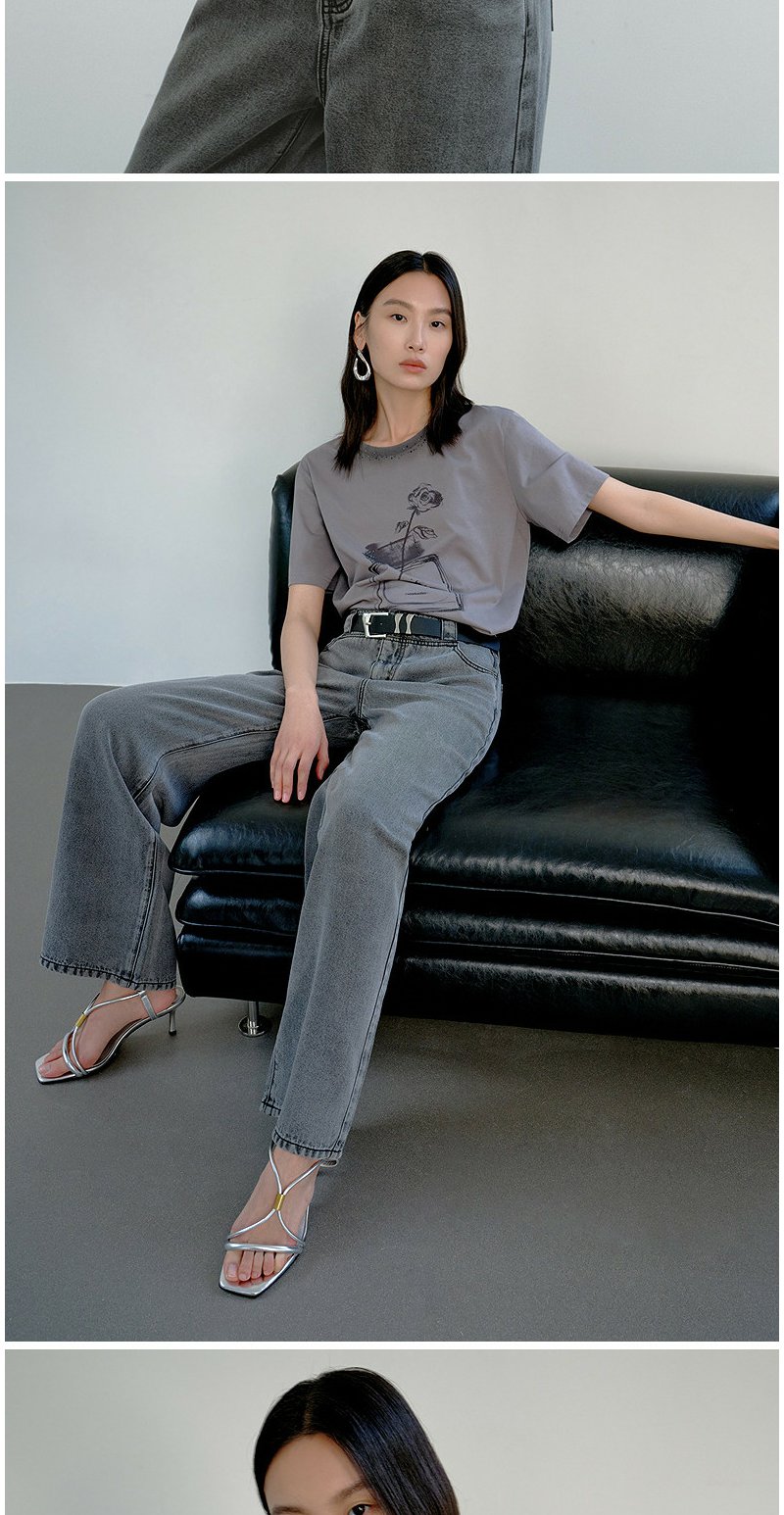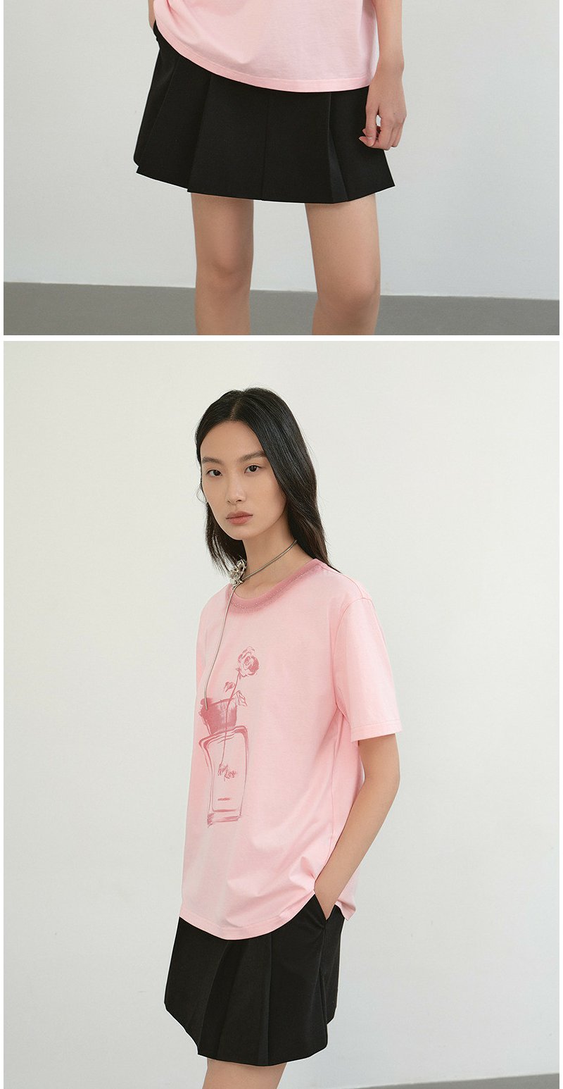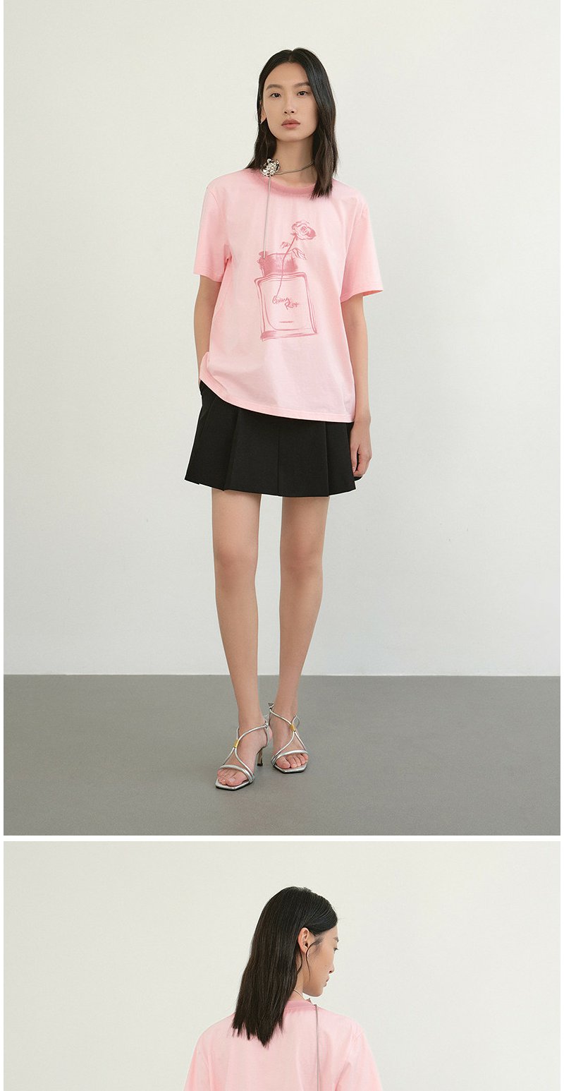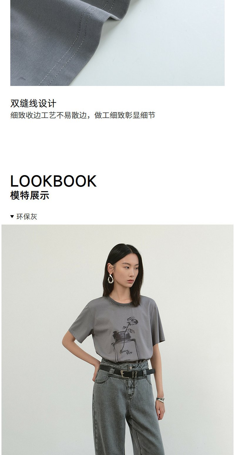 NEELLY纳俪商场同款夏季新款圆领印花短袖T恤女减龄透气感上衣N26044T04550