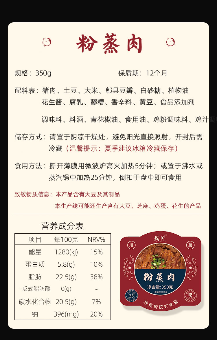 璞匠 四川特产经典粉蒸肉350g加热即食预制菜家宴常备快手菜川菜