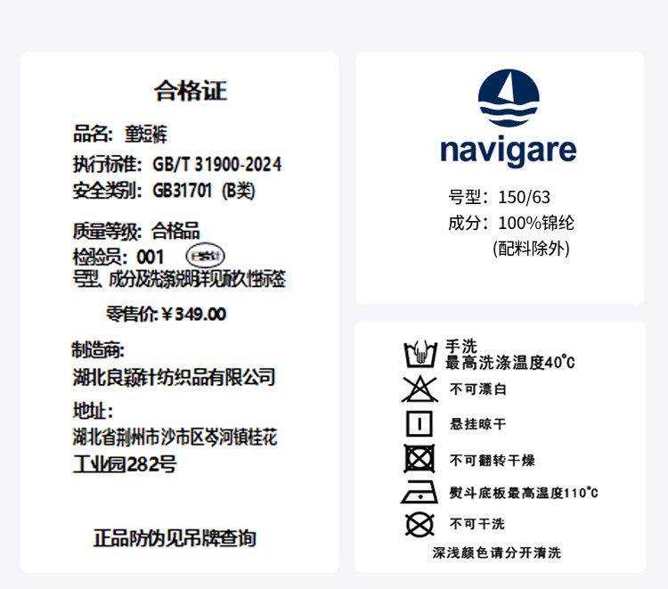 【120-165】【纳维凯尔】Navigare意大利小帆船男女童清爽速干五分裤